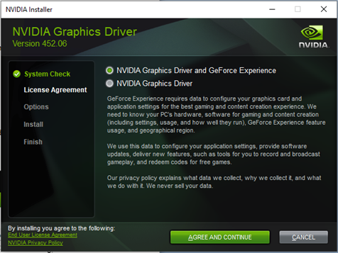 Make sure “Nvidia Graphics Driver and Geforce Experience” is selected as you will need both components.