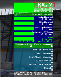- Outside view - frame rates of 40 to 45