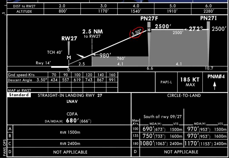 So yeah, for now you’d use FPA/TRK mode and dial in a -3.50 angle (as shown on the approach chart), and then activate the FPA descend about 0.3 nm before you hit PN27F. Should get you down nicely to the runway…