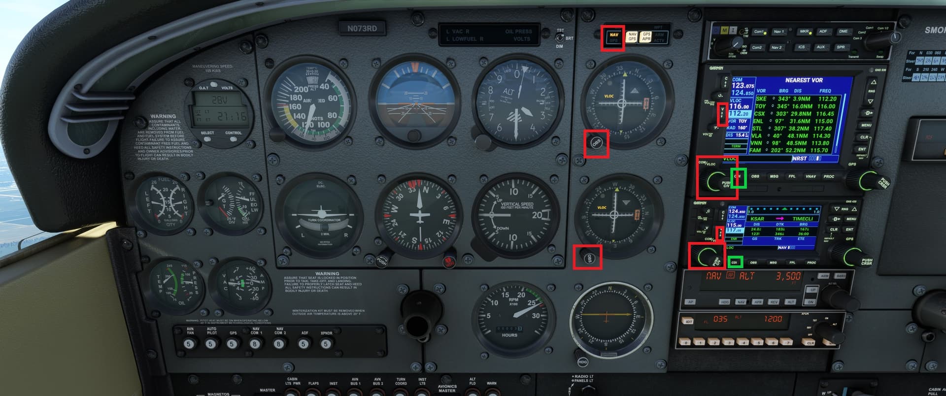 If your question is how to set the actual nav frequencies, then I’ll cover that too if you need it.  Make sure you set the CDI button on each unit so “VLOC”  (VOR/Localizer) shows on the CDI indicator.