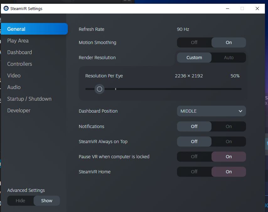 Thanks, I figured something was off, given the blurriness of the Garmin panel buttons in the C172. It was the “resolution per eye” that fooled me. I tried 100% using Steam VR previously and it was unplayable, with extreme rubber banding and weird pauses. So far for me the smoothest and most playable form of Motion Reprojection has been with WMR and OXR.