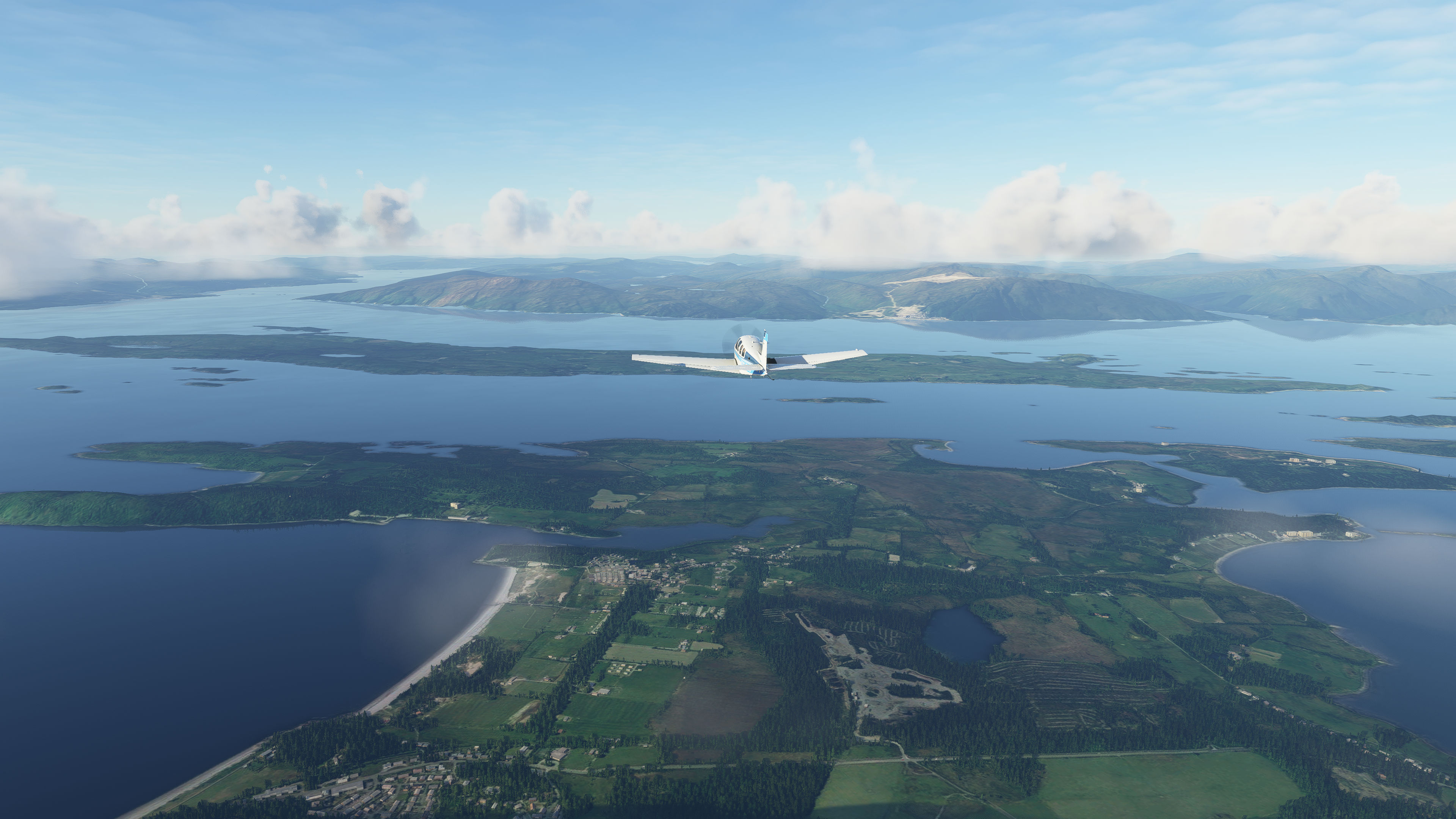 Sat back and enjoyed the passing scenery, taking numerous screenshots in the process. I was largely a passenger while the AP did the work and I just managed fuel. It turned out that 4,000 feet was perfect: everything looked great from this altitude. Note that I have a Ryzen 7 3700X/RTX 2060 PC on a 32" 4K monitor with settings essentially on High end. Frame rates are OK-ish at consistently around 25FPS but for me this is fine as at my settings the graphics are quite lovely from my perspective. A clear case of to each his own…