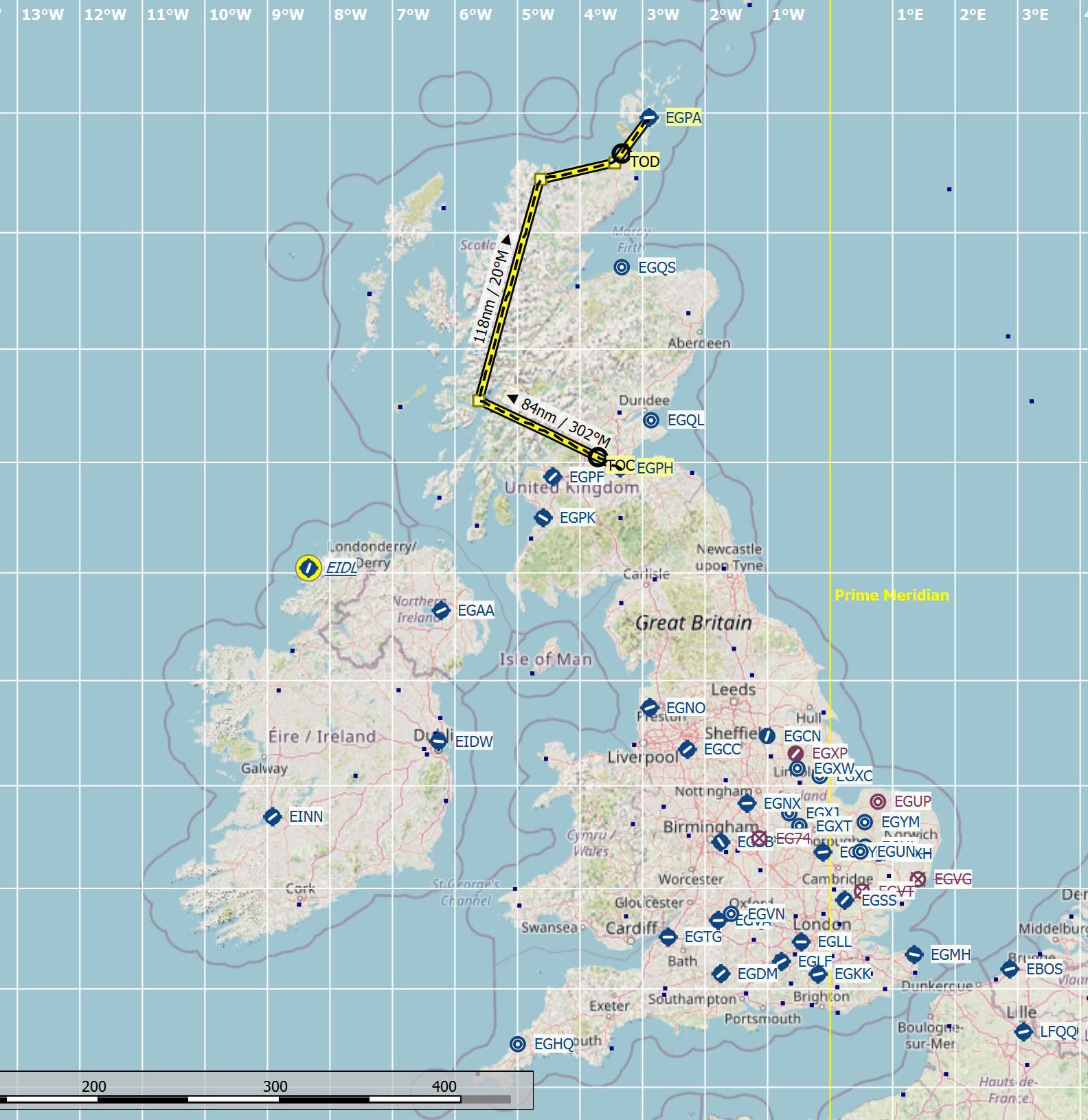 up a slightly meandering flight plan from Edinburgh to Kirkwall: