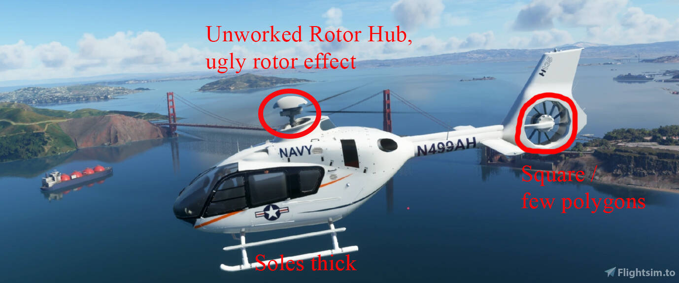 You are comparing a commercial company with professional 3D modelers with a team of passionate people that have made a flying heli for free. I can find plenty of mistakes regarding the expensive Carenado models. The H135 is free and improves everyday.