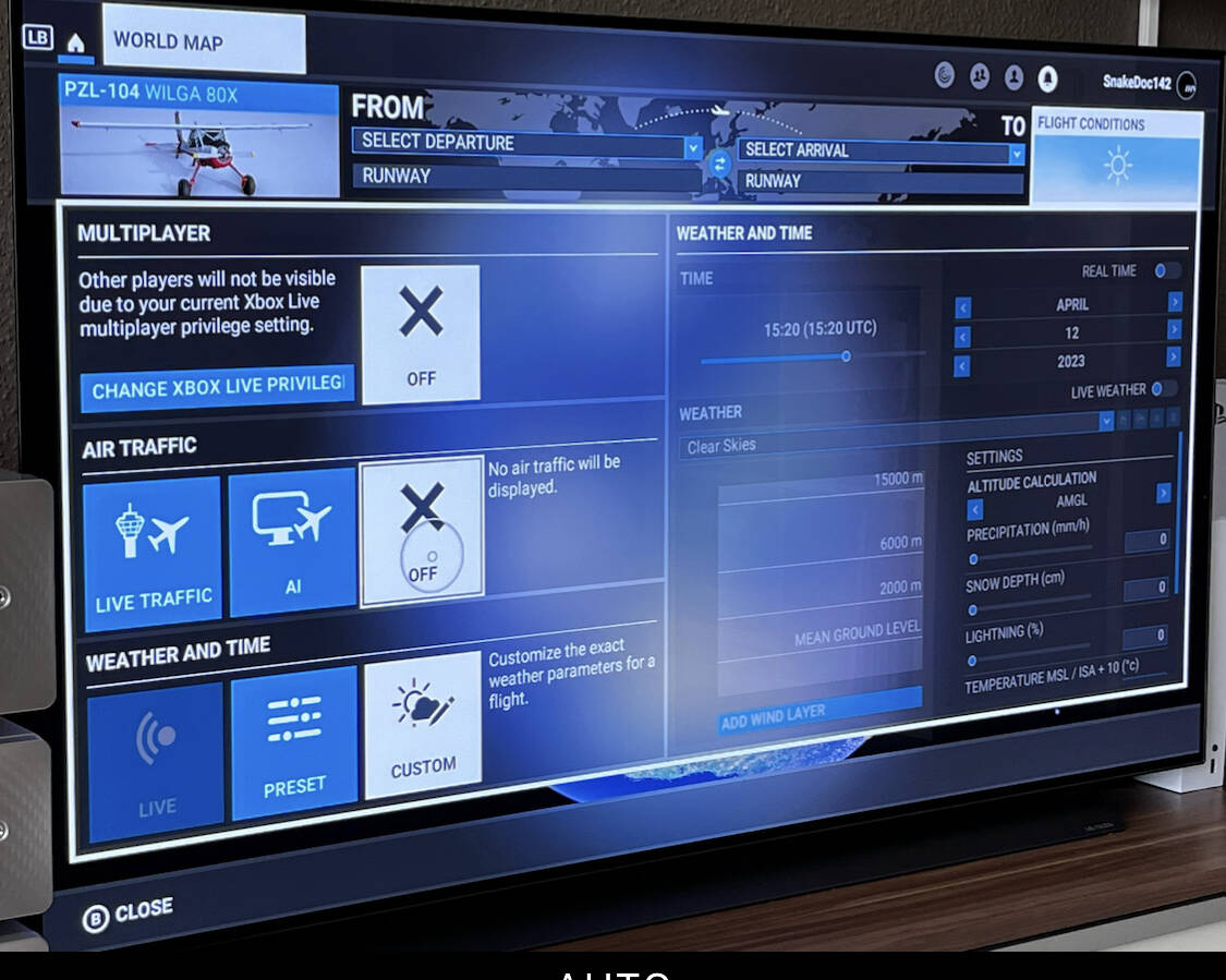 Do you have a way to screen record, or record a video from your phone? It would help to watch in real time what you are doing to make sure we aren’t skipping a step or somehow talking past each other. So record the world map showing your flight conditions with traffic set to something other than live, then see if you can adjust the weather there. Keep the recording going as you load in the flight and then bring up the weather settings to see if you can change anything there.