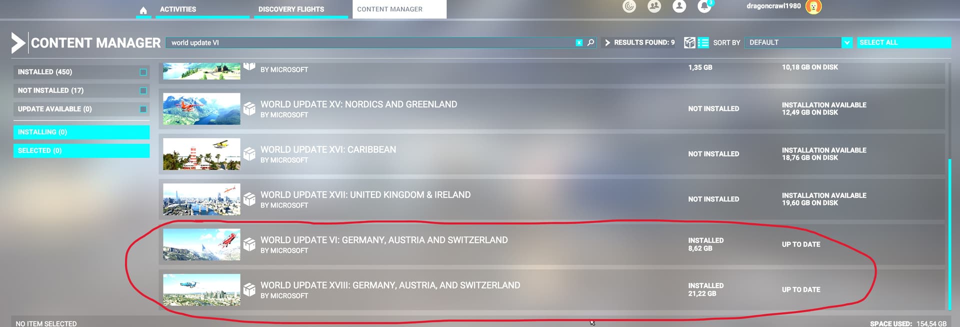 Yes, normally the missing packages, which have to be installed, are shown then for the specific discovery flight. But in the case of Discovery Flight Berlin and Pennine Alps when I click on “Go To content manager” there are shown just all not yet installed packages (landing challenges, EDDM Airports and other stuff).