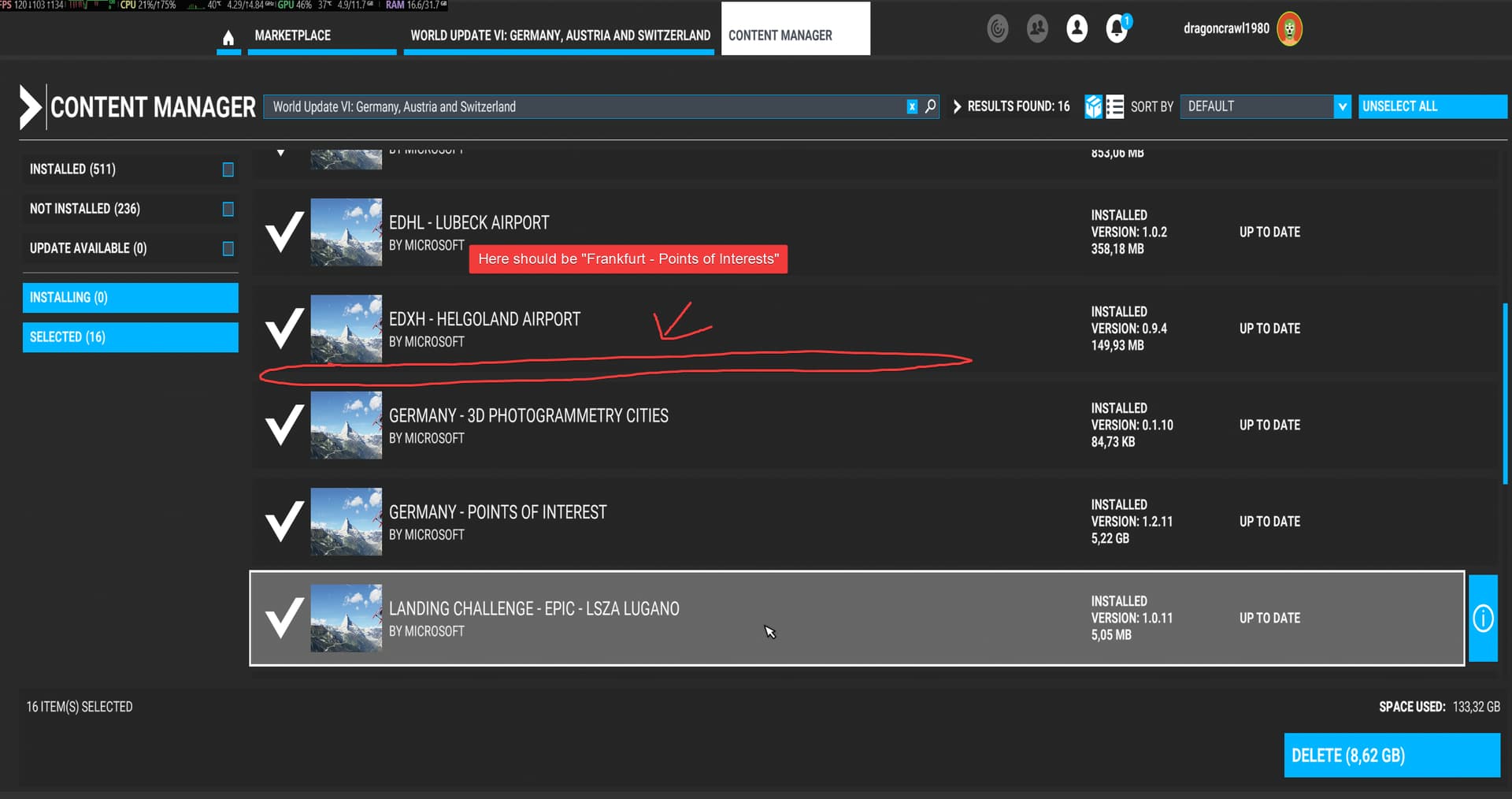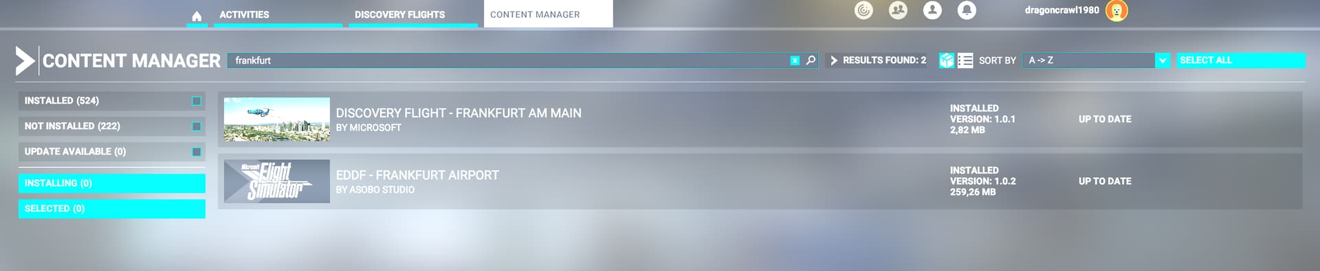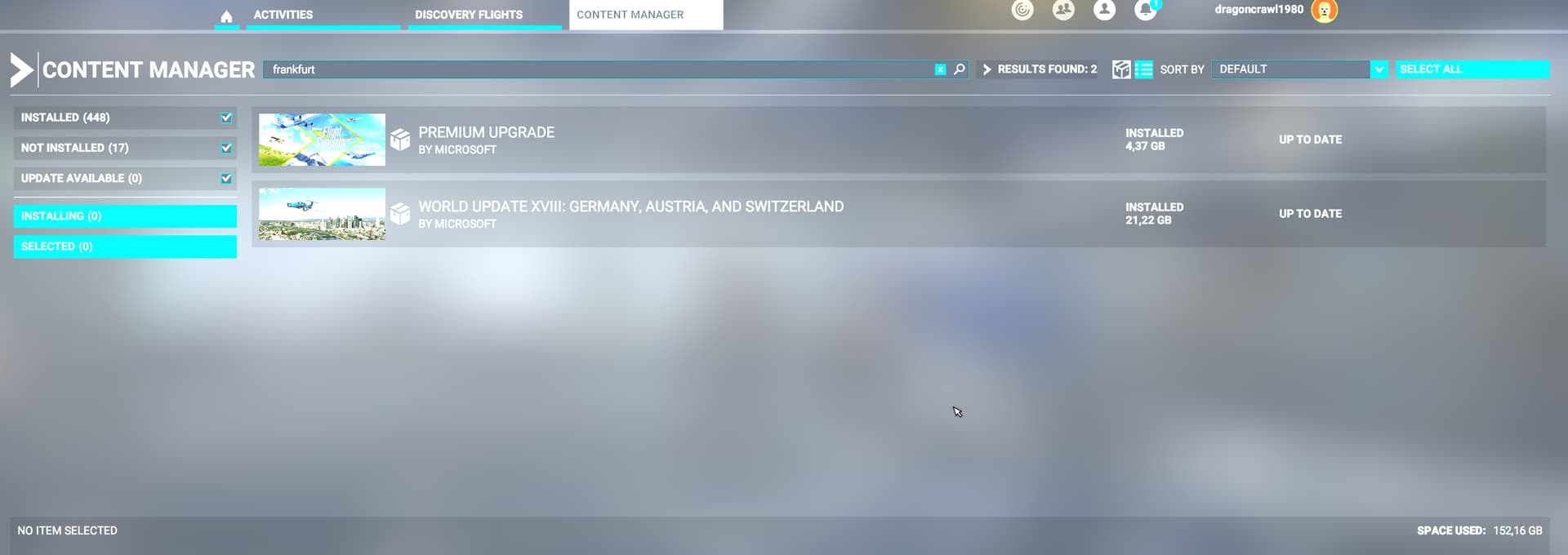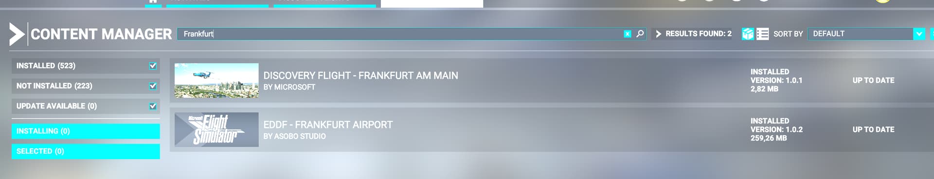 I can not find the package “Frankfurt - Points of Interest” in the content manager and I wonder why the sim needs a Frankfurt package if I just want to fly around Berlin? Funny enough the Discovery Flight Frankfurt is no problem to start.