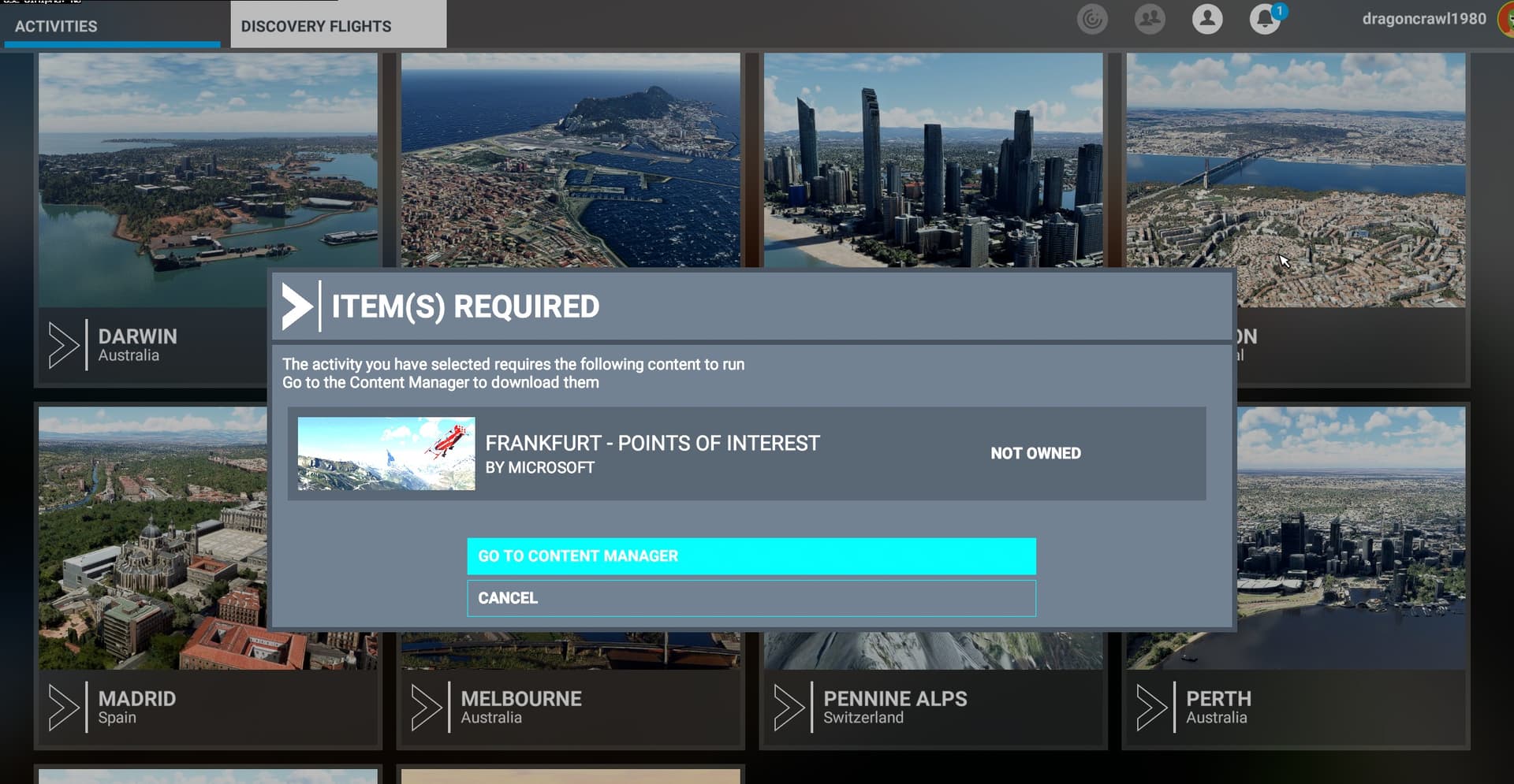 I want to do a discovery flight in Berlin. I have downloaded everything german related, but the game insists that I still have to download the “Frankfurt - Points of Interest” package (Screenshot at the end of this post).