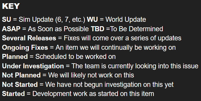 It’s a bit out of date but here’s the key from the 20/1/2022 Development Update: