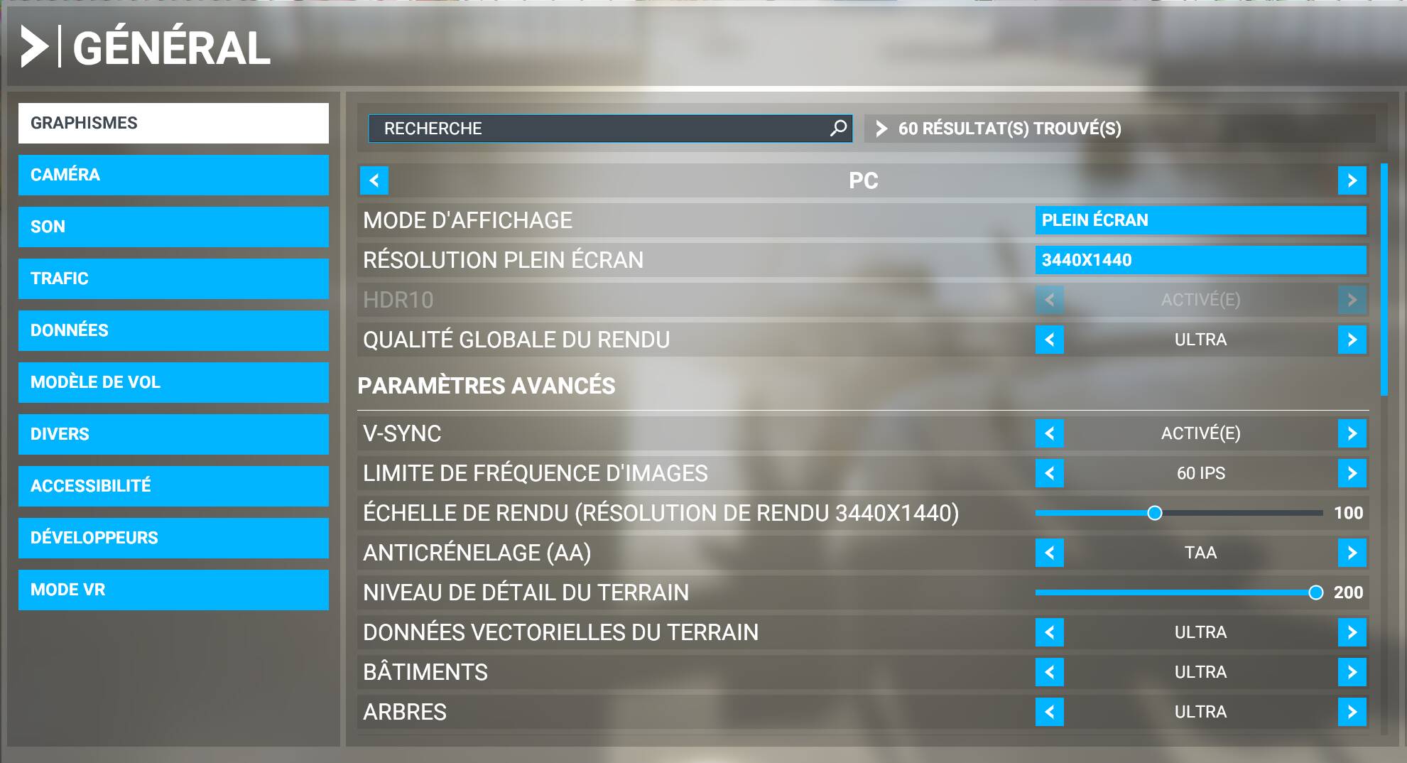 Just upgraded from i7-7700K+GTX1080 to i9-11900K (HT OFF)+RTX3090. What a gap ! Now the simulation is so smooth in ultra mode everywhere (3440x1440). At very low altitude and in very dense places like New York city or Paris (gravimetry), I got between 30 and 40 FPS, never less. This is fantastic !