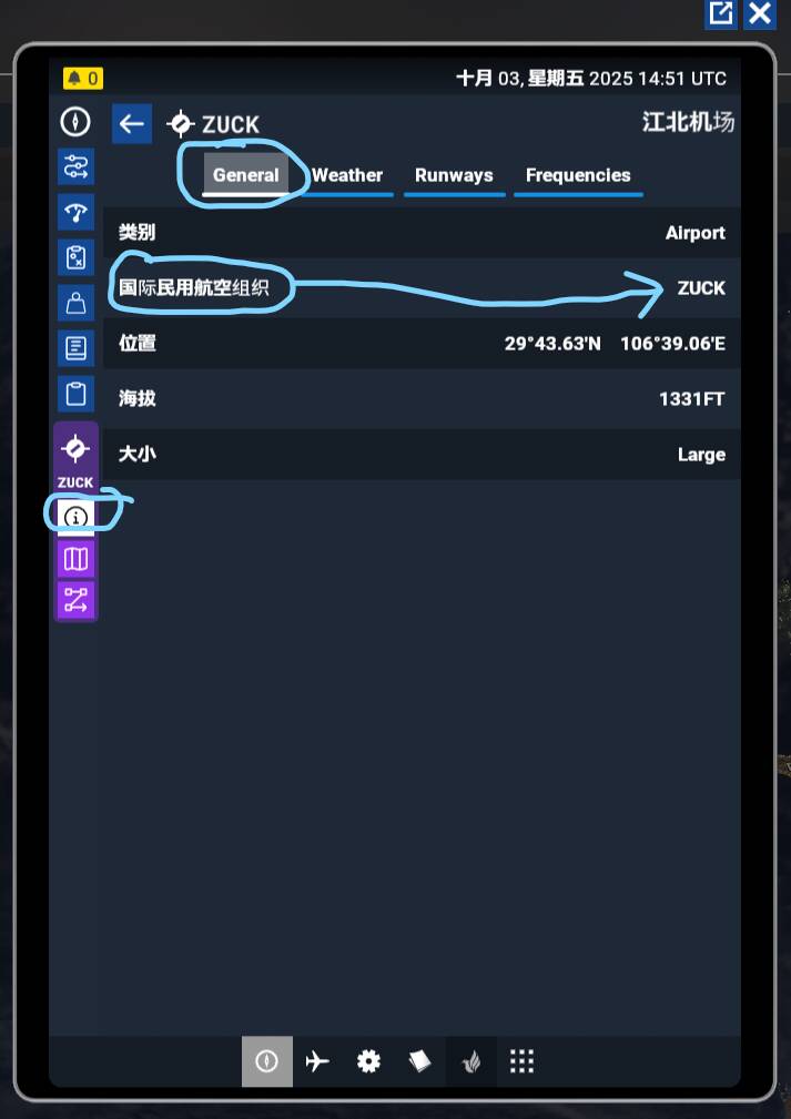 The basic information shown on EFB has a translation error. On airport information page, when saying ICAO code of the airport, it is translated as 国际民用航空组织, the full name of International Civil Aviation Organization in Chinese.