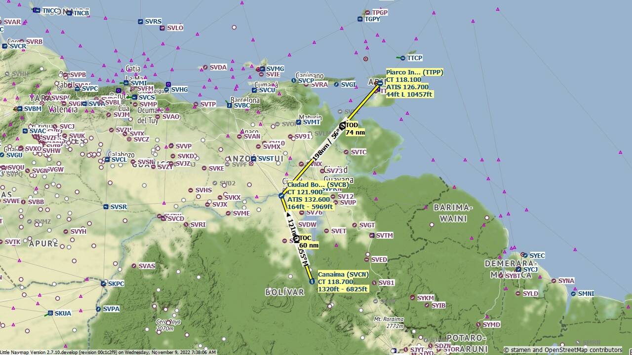 This week we fly from Canaima (SVCN) to Piarco Intl (TTPP).