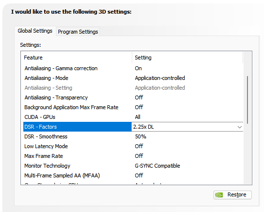 Dsr to 2.25x DL, dsr smoothness to 50%