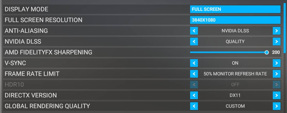 DLSS Quality, AMDFX to 200 and NVidia Global Settings 2.25x DL + 50%. I am playing on WQHD, 2560x1440p. And still, as already said, I am having troubles with ghosting and blurry.