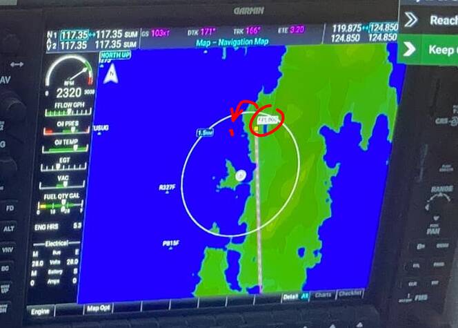 I found approximately where the FPL000 is located. And immediately after the turn, “KEEP CDI” was displayed until the end of the route. (I just reconfigured the GPS and followed the new line.)