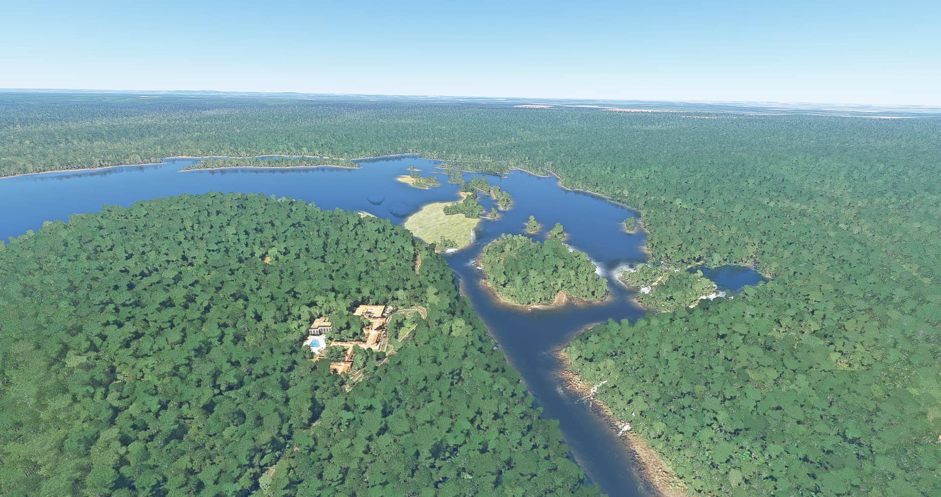 The dam wall and associated facilities are highly detailed with a surprising amount of complexity. Following the river south you’ll find a couple basic bridges done practically leading to the falls themselves. There’s also 2 hotels which overlook the epic chasm. Like I mentioned in my previous comment about special fx, they’ve made a really solid attempt at adding an animated mist kind of effect in a few spots. You can tell there was a lot mesh work/terraforming and painstaking wrapping of the satellite data done here in a way that it makes sense.