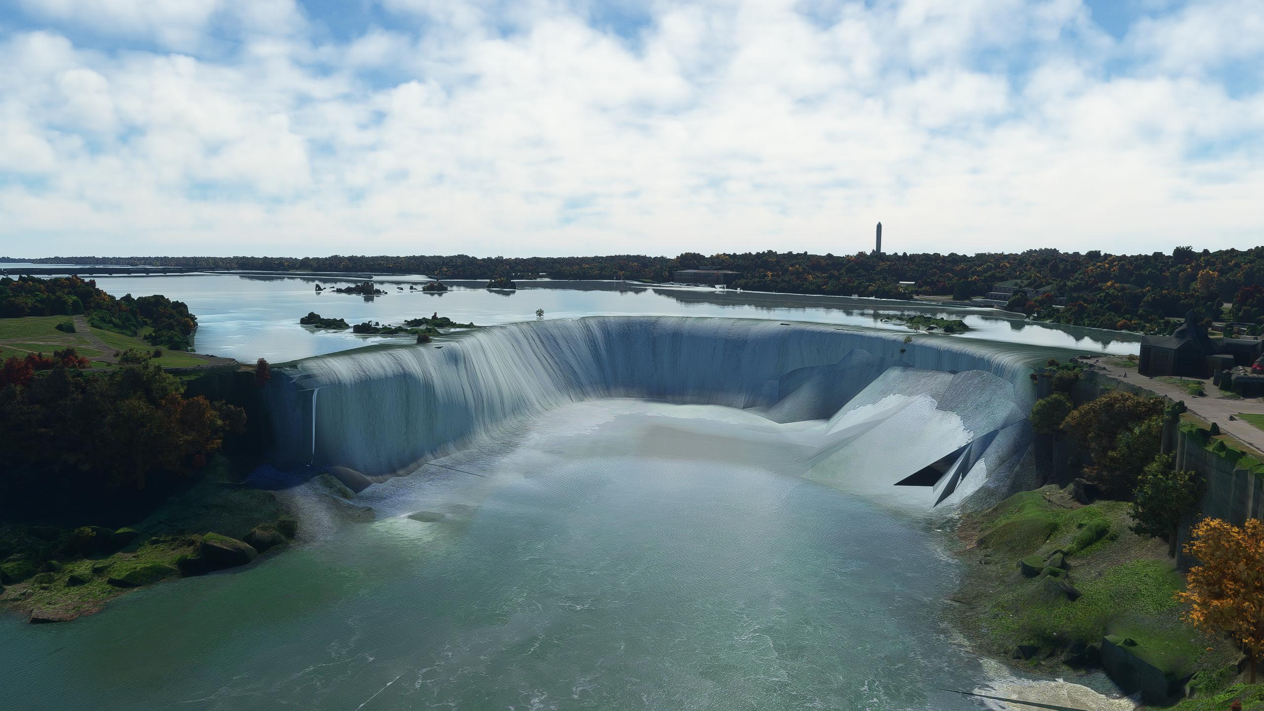 I went to Niagara University so going back to the Falls was the first place I flew after the Canada update. Disappointing to say the least: especially since the Falls are being used in promotional material. Photogrammetry is poor. I wasn’t expecting live water or even a mist, but the water is not good and looks like giant squares. Not sure how else to describe it but there are massive textured squares splotched in the water and on the falls themselves. I hope they go back and fix this.