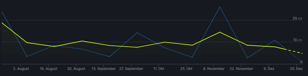 Since August 1st, the proportion of active players has fallen by around 60%. Since publication by approx. 85%.