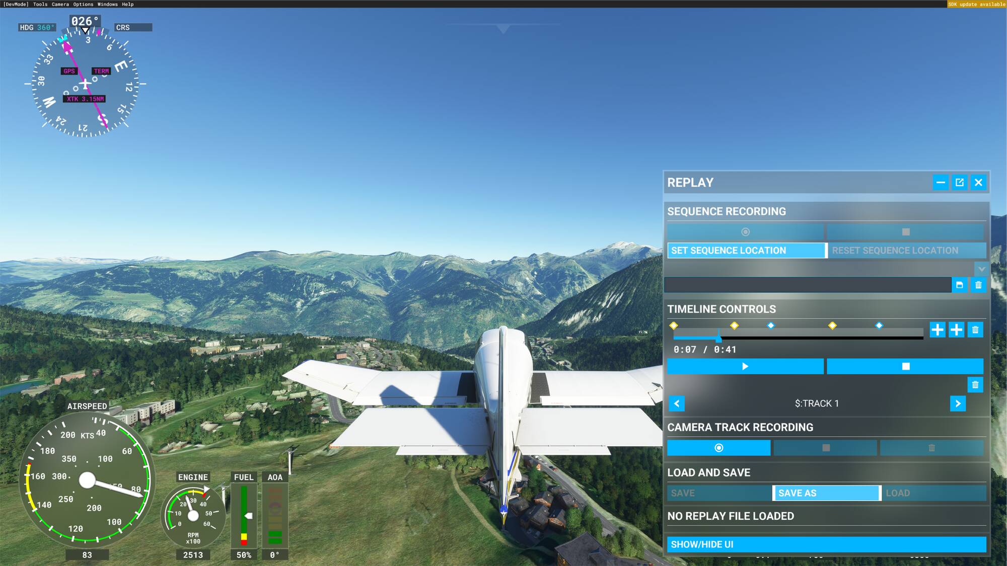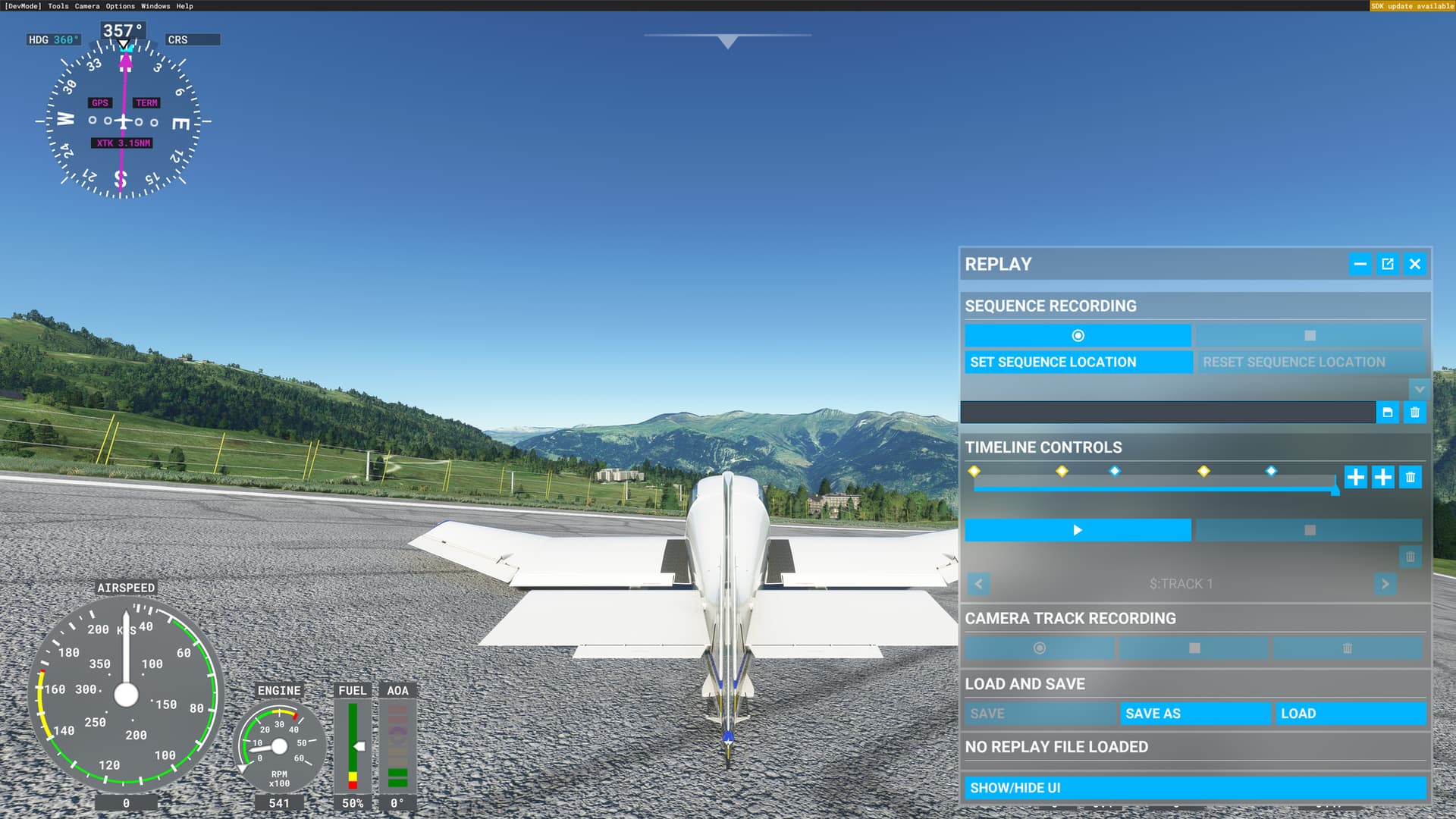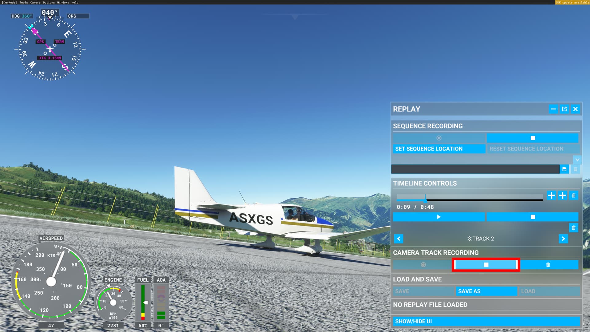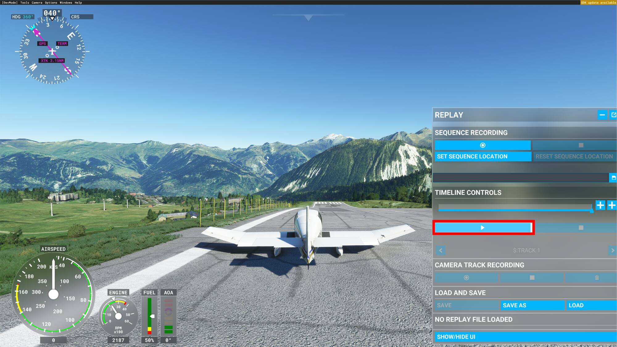 To display the replay tool panel during a flight session you’ll have to activate the Developer mode first.