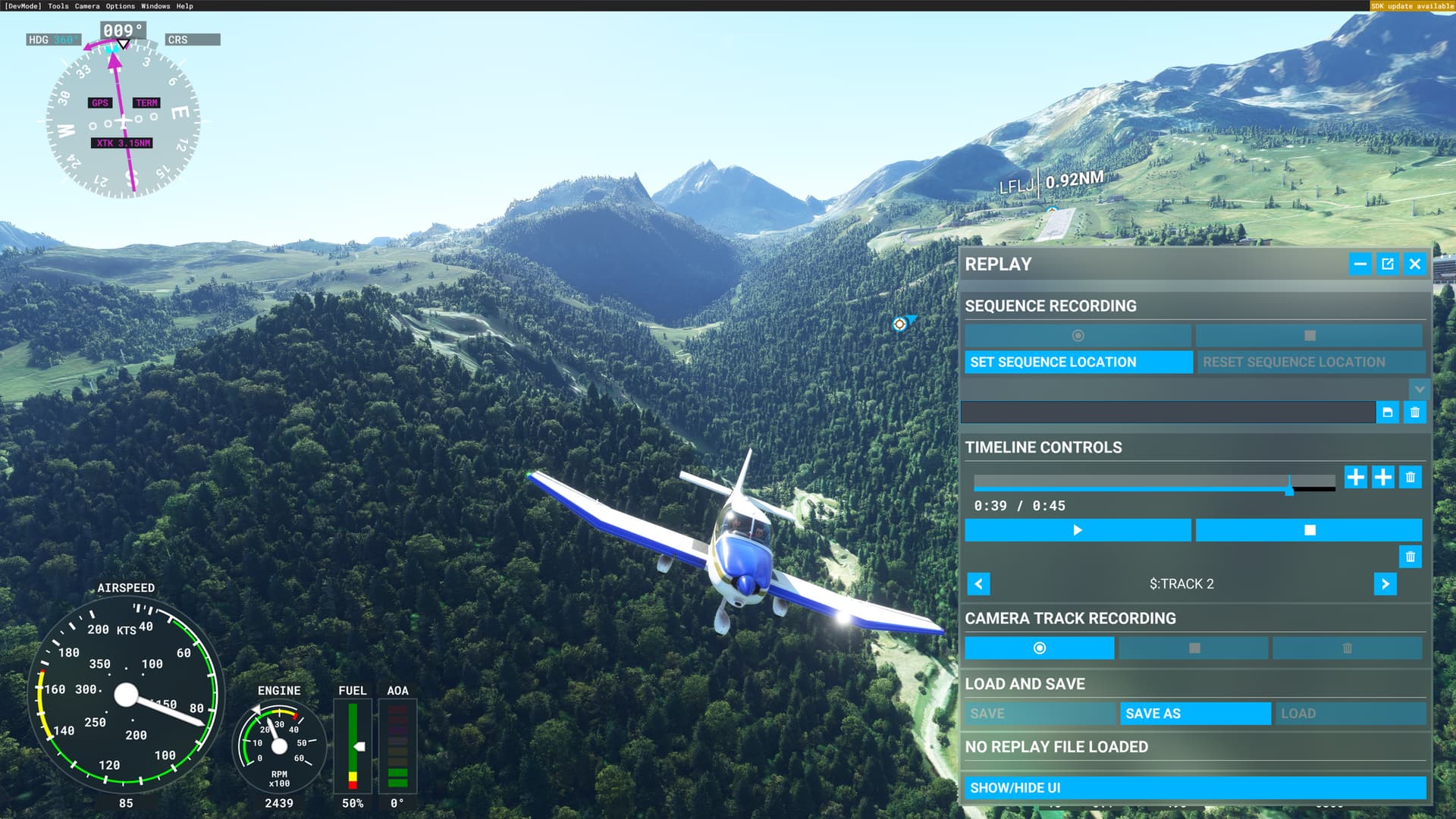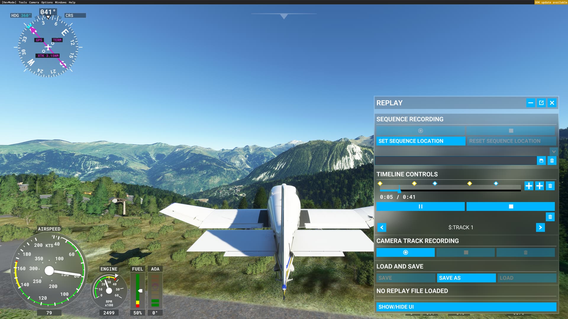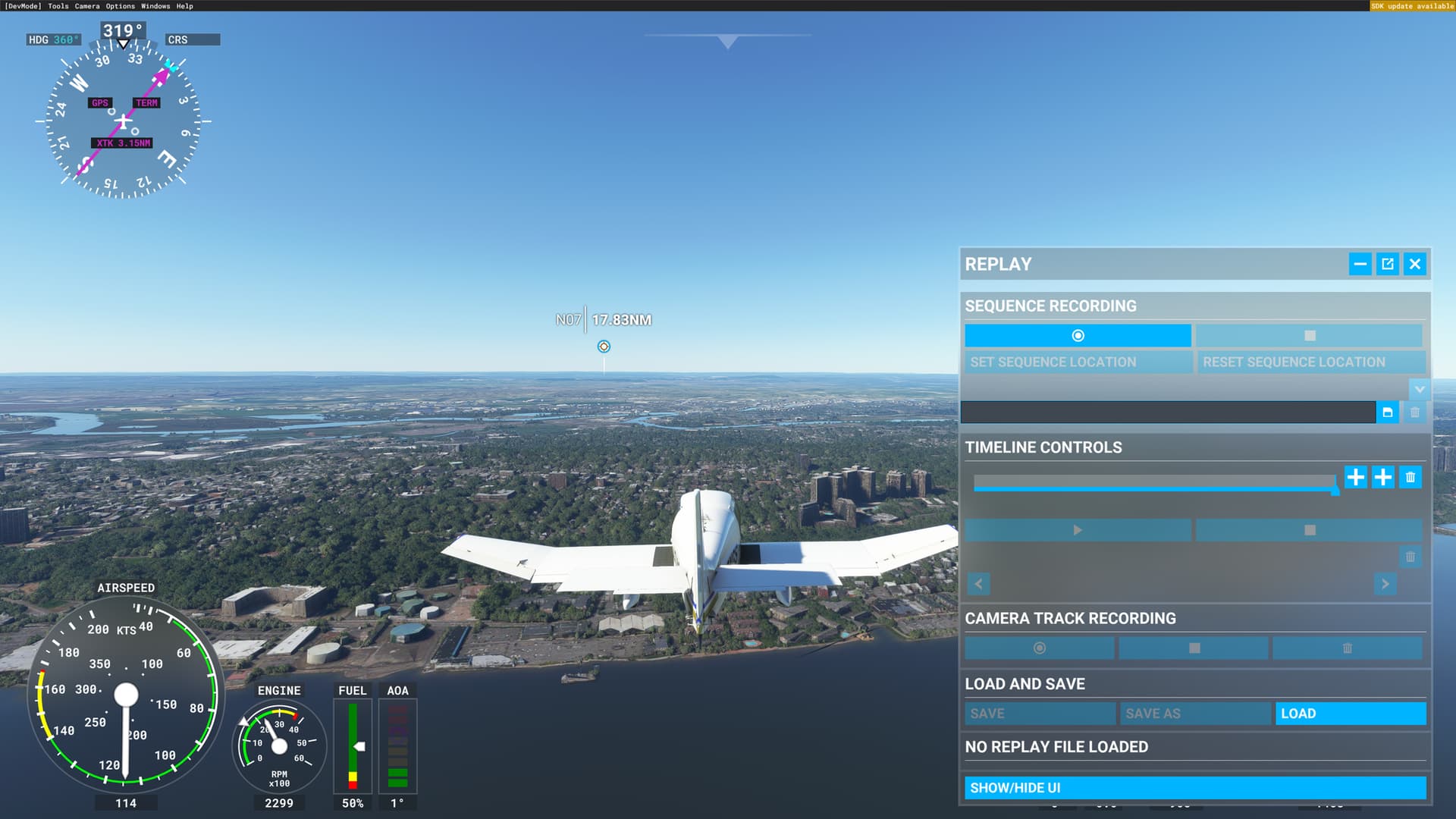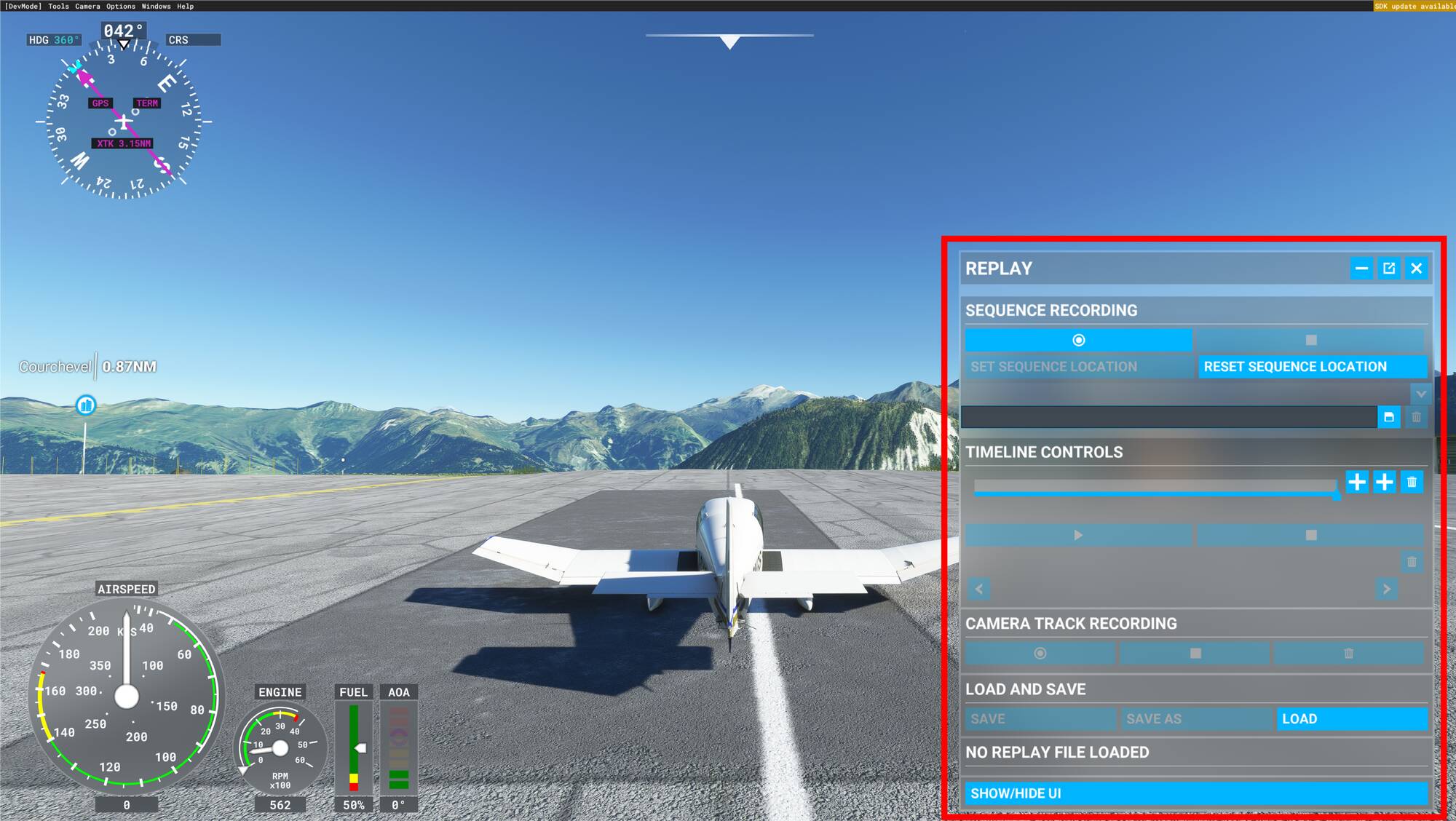 To display the replay tool panel during a flight session you’ll have to activate the Developer mode first.