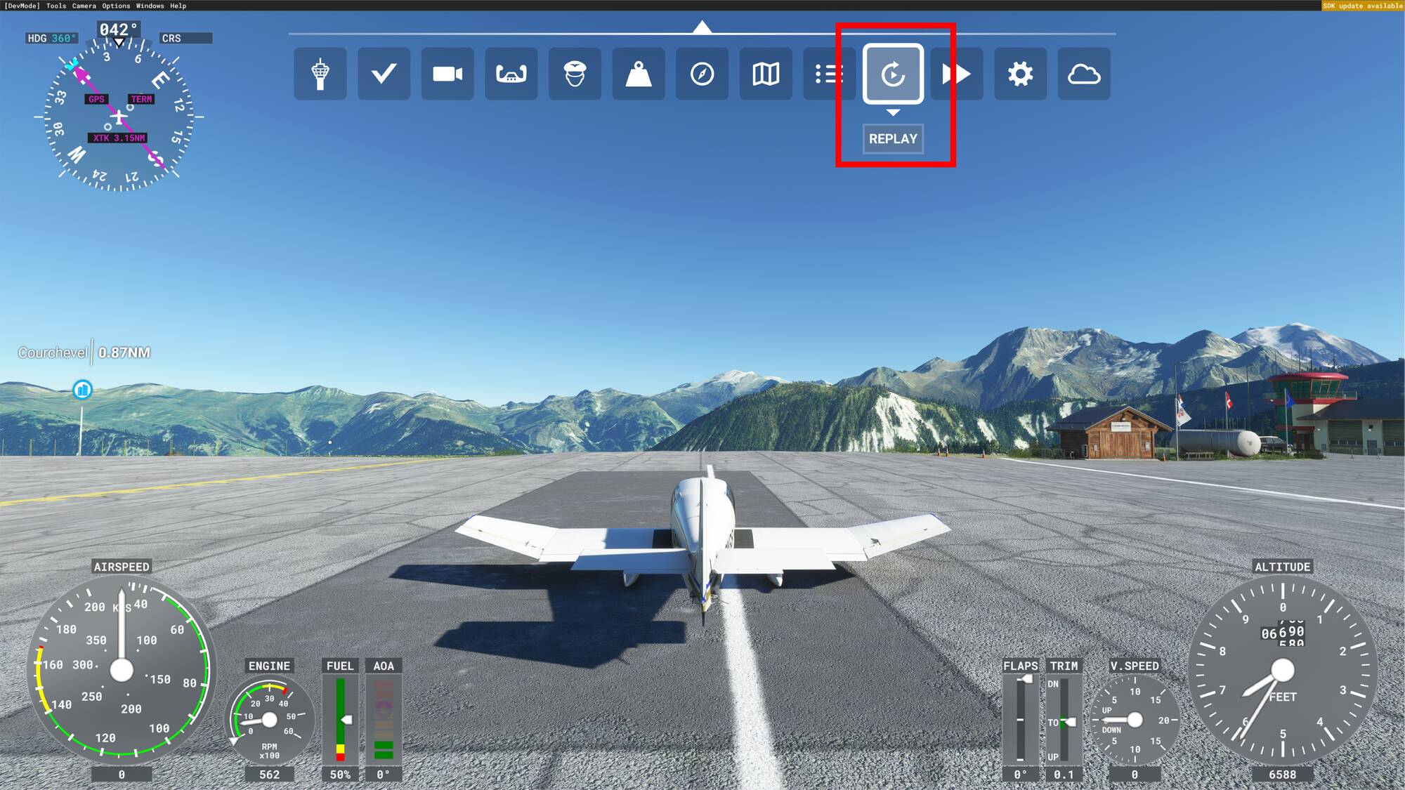 You’re close to having access to the replay panel, all you have to do now is to start a flight session as usual.