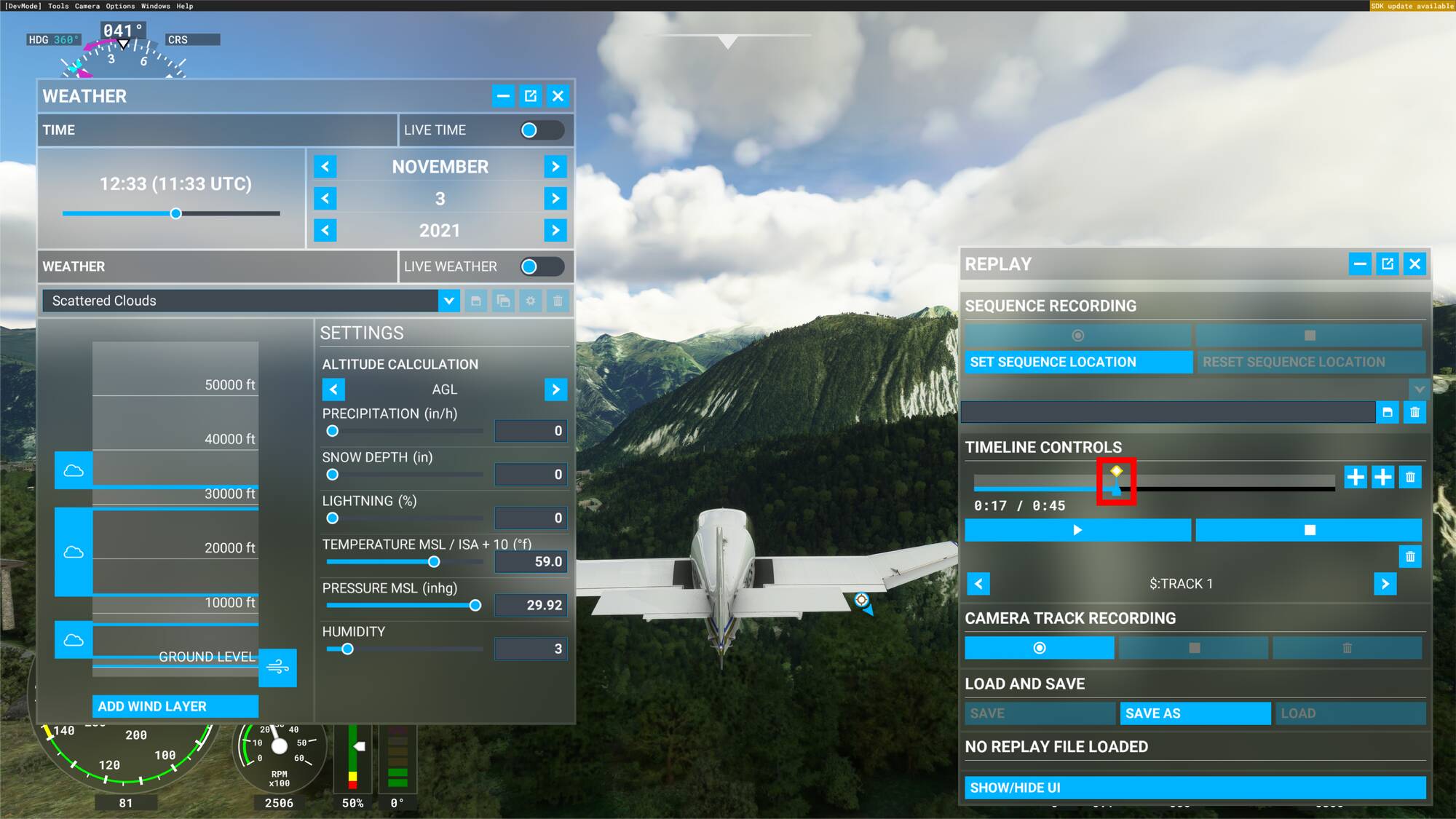 Replay is a powerful tool developed to allow you to record and explore your flight sessions. More than just capturing a flight session, it allows you to edit it by changing or adding new cameras, modifying the plane location, or even changing the weather!
