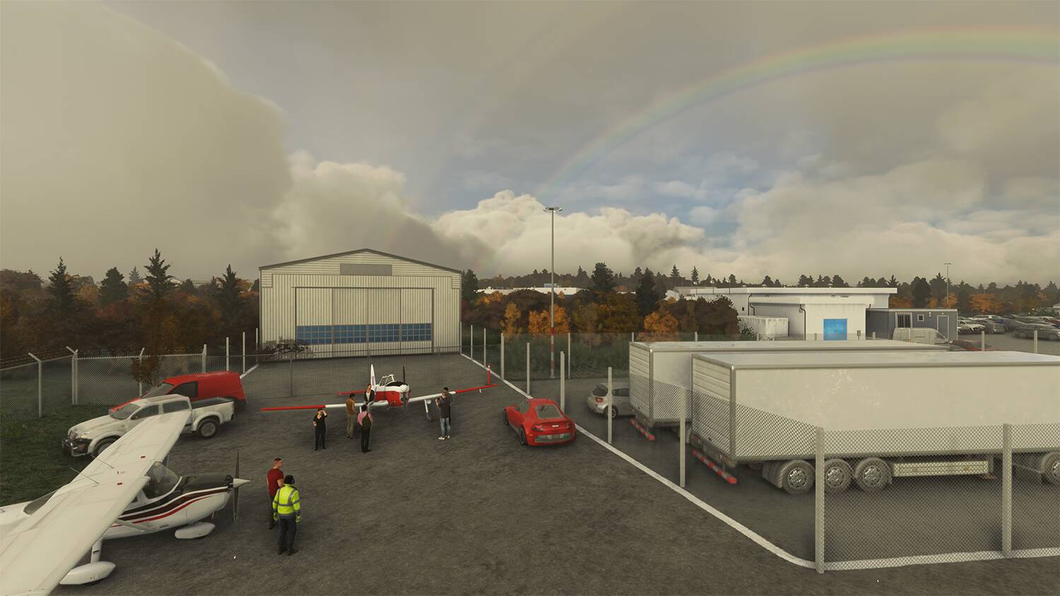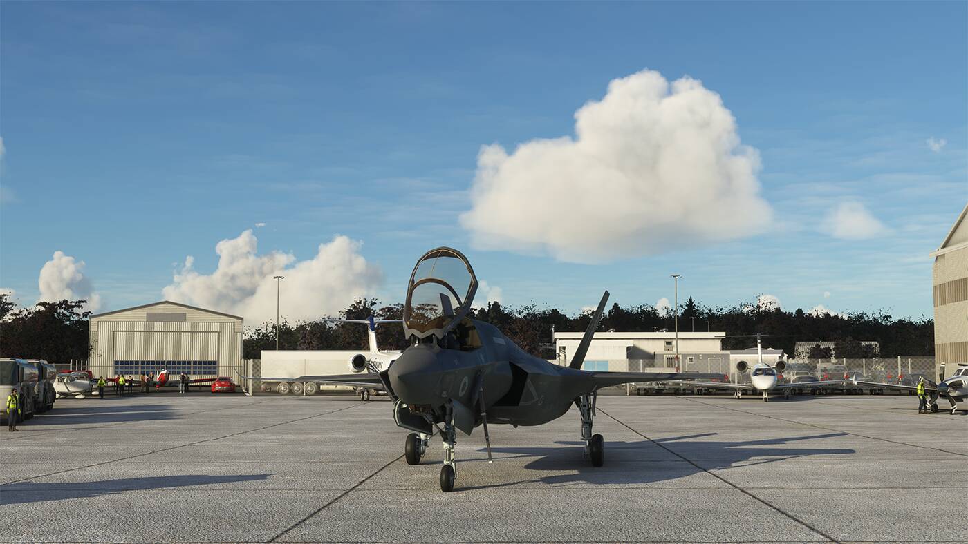 One of them is an ex Harrier pilot who did test pilot work flying the F35. So I quickly put together this little scene in the sim SDK with my bothers Chipmunk outside the exact hangar its kept in at Farnborough with my new plane parked near by. I posted these shots on my brothers Facebook page which lead to a lot of amusement and pilot banter about how the Harrier was a real pilots plane for pilots who actually knew how to fly and if you can boil a kettle then congratulations you’ve just past your F35 flying training.