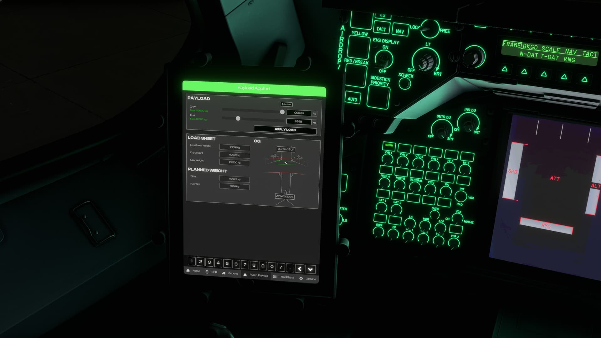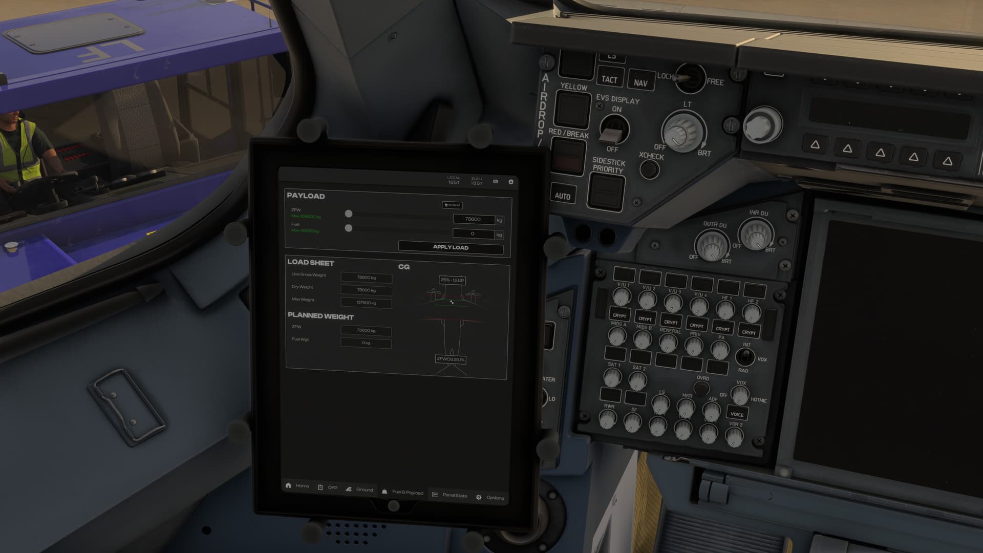 The A400M should actually have a cargo capacity of 37t or roughly 82000lbs, the maximum that can actually be set in the EFB is about half of that at about 43000lbs, i.e. about 20t, which is a whole 17t short.