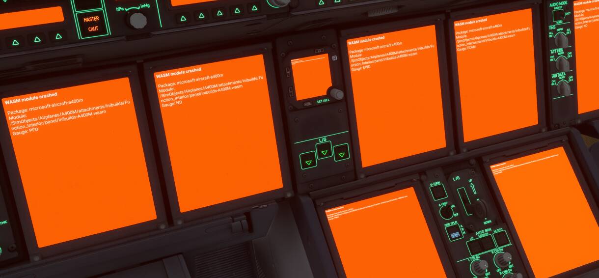 Immediate WASM module crashed (orange) for every display in the cockpit