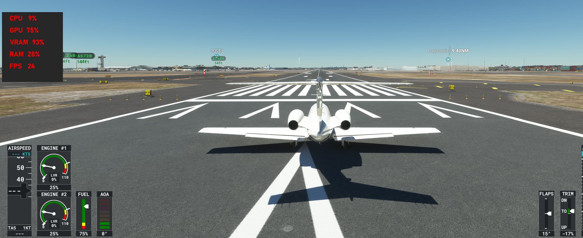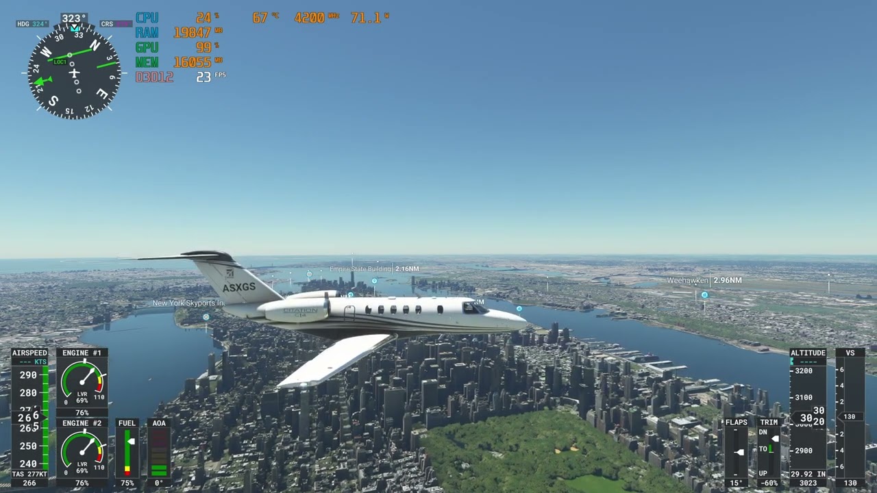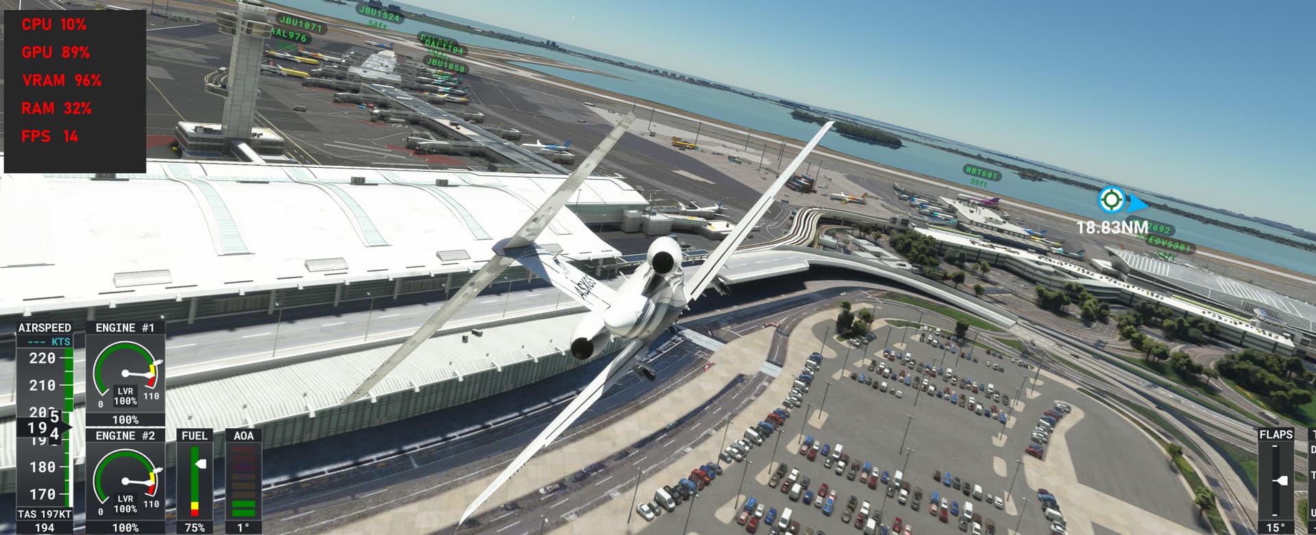 Exactly the same thoughts here. I have three 1080p monitors and get 24-25 fps at mostly low settings. What you’re getting would be a very significant improvement. The fps is sufficient for a flight sim and allows one to fly without problems as you show in your videos. I would be willing to accept slightly lower graphics settings than what you’ve reported to boost fps to 30, which is without question enough for a flight sim.