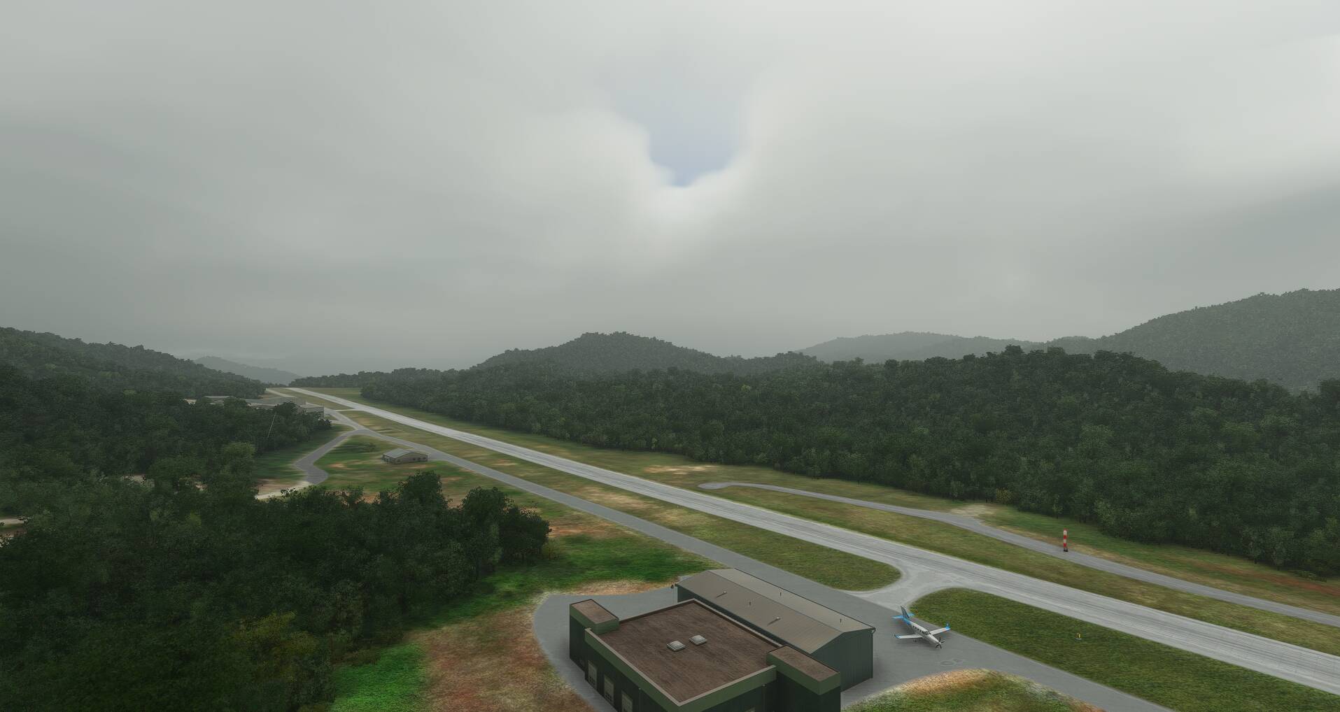 Today had some fun flying into WMBT a little island off the coast of Malaysia. It is one way in and one way out. You have to make a steep final turn to line on account of the mountains.