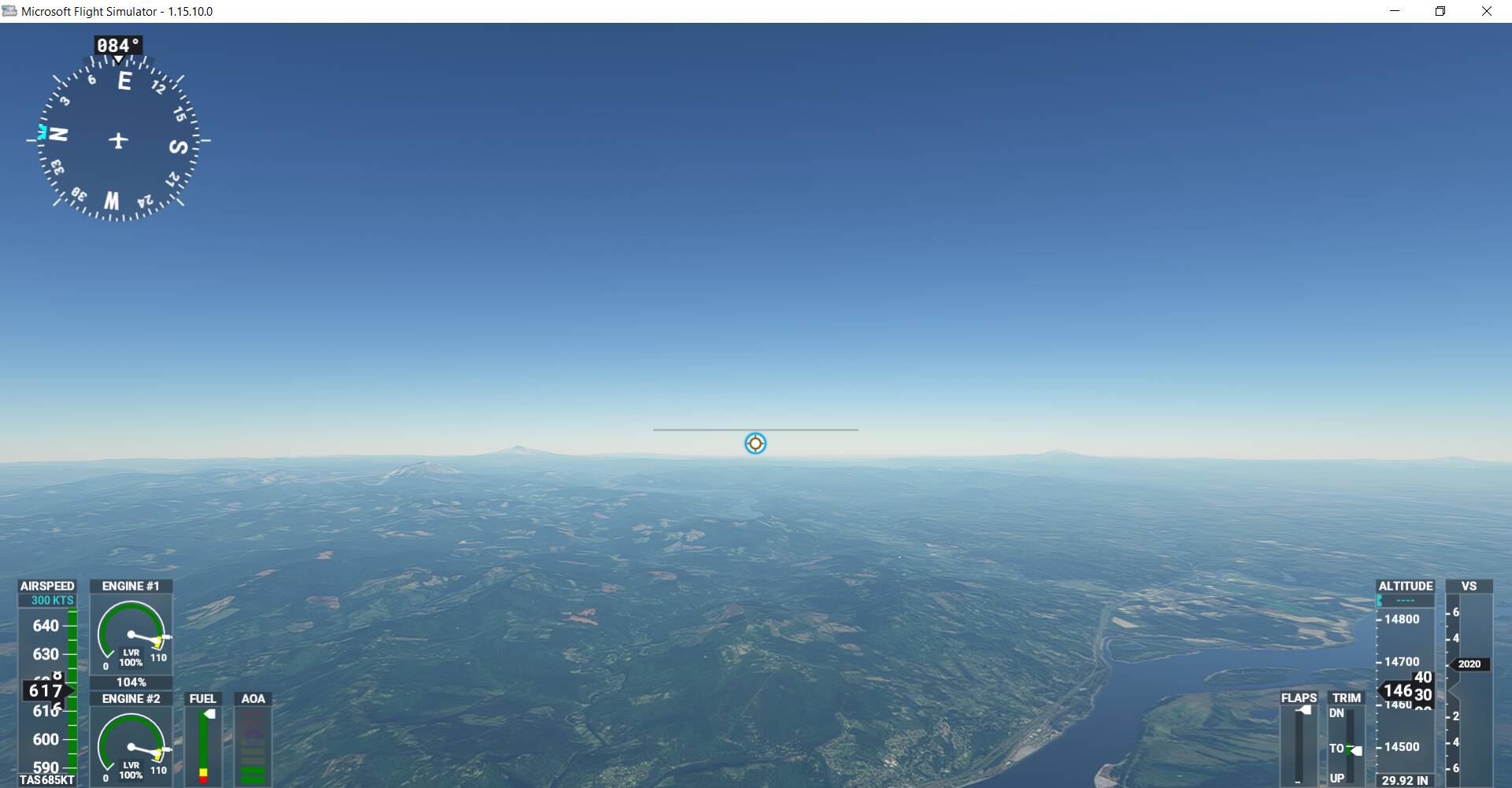 After the new update to the DC Designs F-15, the aircraft is completely invisible in the sim, with the exception of a handful of small lights. This is what I see with the exterior camera directly behind the aircraft in the default position.