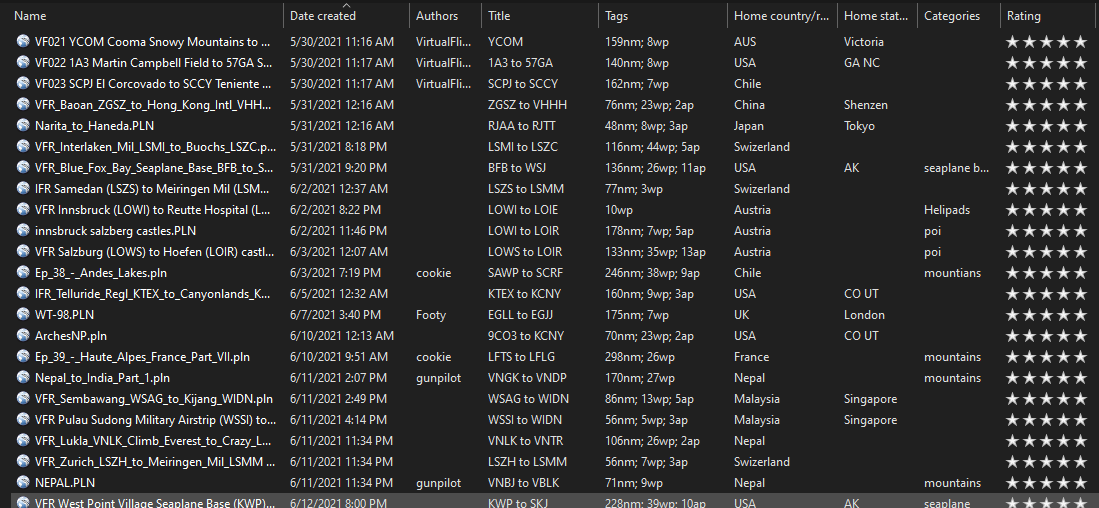 I’ve uploaded an initial version of a new flight plan manager. I’m still trying to decide what columns to add (suggestions welcome), for example, I see above “Author” which might nice. I also want to add the ability to choose which columns to show and add filtering, but I’ve at least got a start.