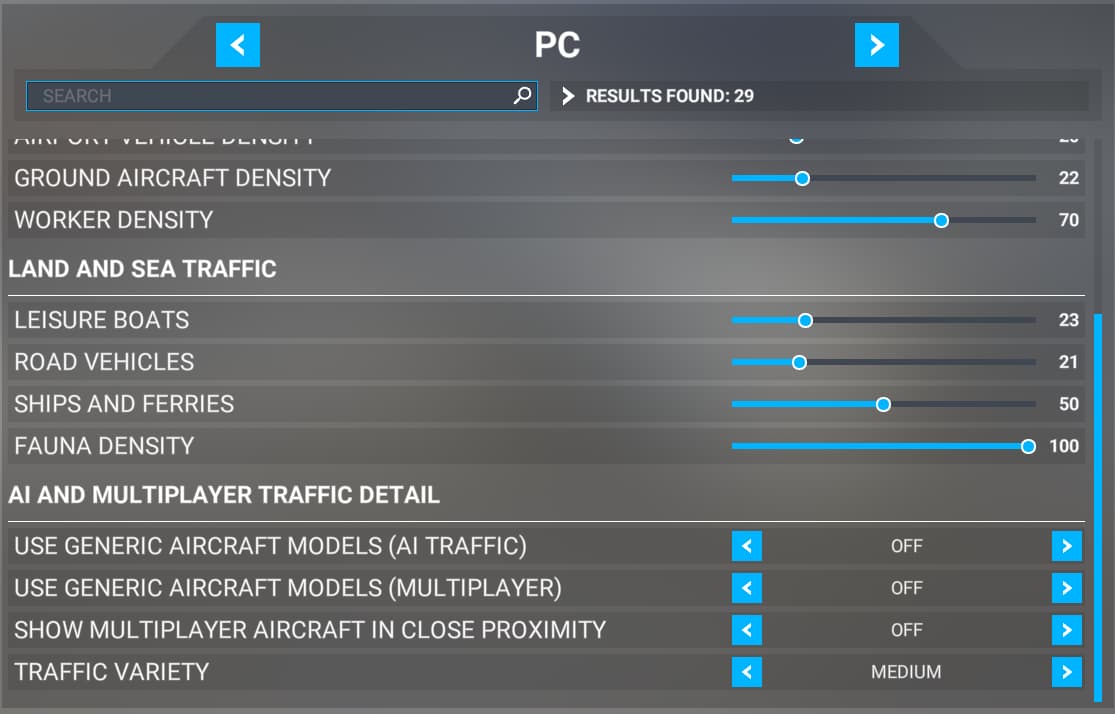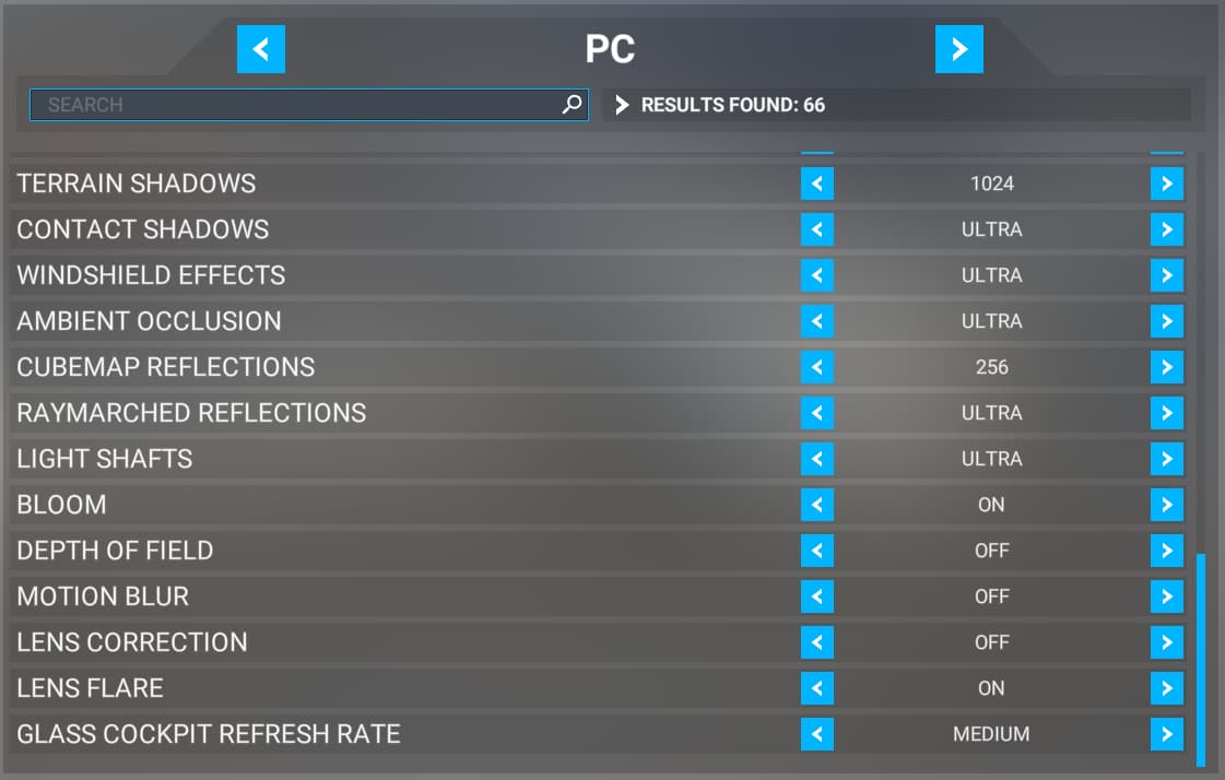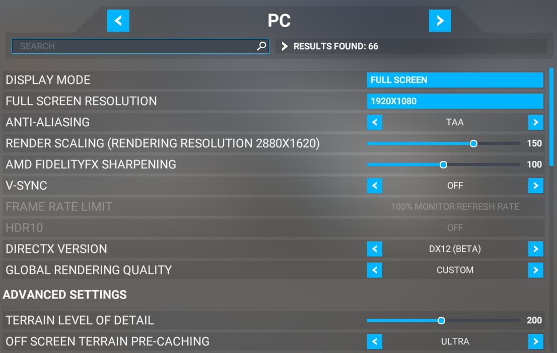 My settings are WAY overkill for my equipment, so reducing to something reasonable should give you a decent experience. Take into account that in any case, KLAX is a known frame eater. Another thing that could be done to improve performance is disabling all AI traffic. I have disabled multiplayer because I frankly don’t feel a departure from KLAX with an F18 trying to do a sonic boom while crossing an Extra 300 doing lomcewhats is the idea of a flight simulator.