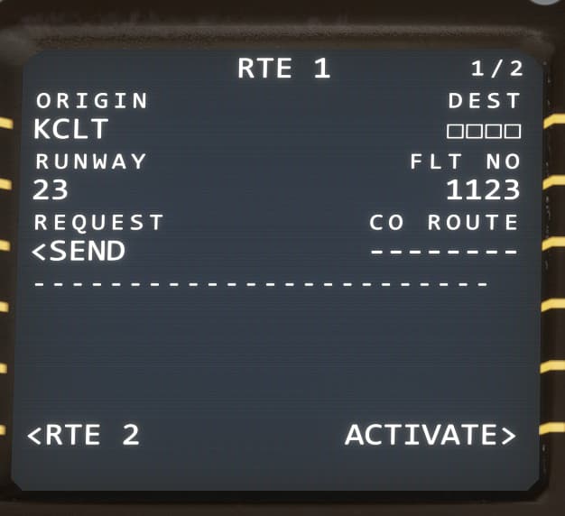 I linked to a video of what I was trying to do. In this case I am starting at KCLT and going to KLGA, so I entered those airports as ORIGIN and DEST on the RTE page. Then tried to enter the runway and the FMC tells me it is not in the data base.