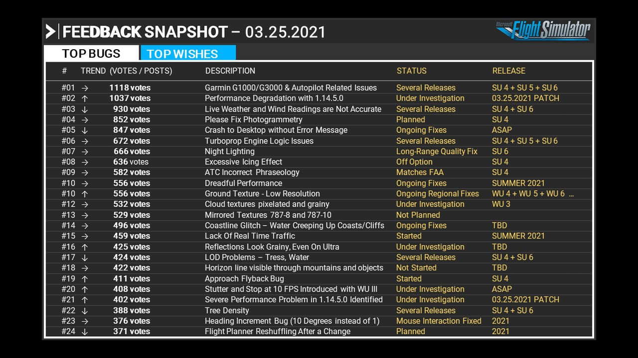From quality and stability perspective, after the latest patch 1.14.6 I am seeing the most “flyable” and “stable” version we have so far. Less stutters, less CTD, less unrecoverable FPS drops (some areas still suffer from this bug like London, UK, Atlanta, GA and Denver, CO for example). Overall, it is the best thing we had so far.