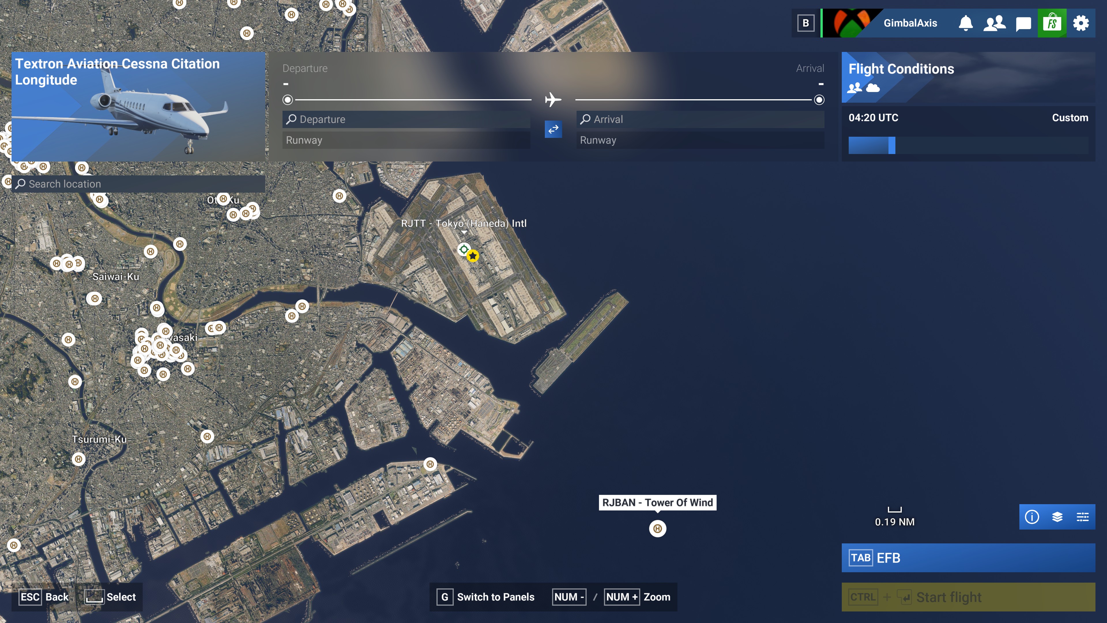 Screenshots showing RJTT Haneda Airport in downtown Tokyo