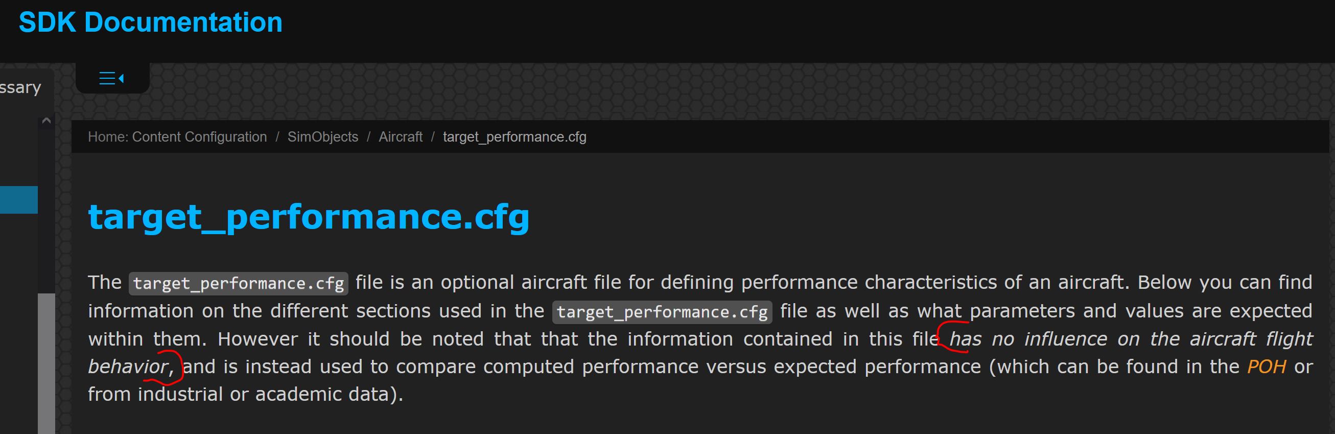 Regarding the Target Performance file - it can safely be ignored as, confirmed by the screenshot from the SDK below, it has no bearing on how the aircraft flies.