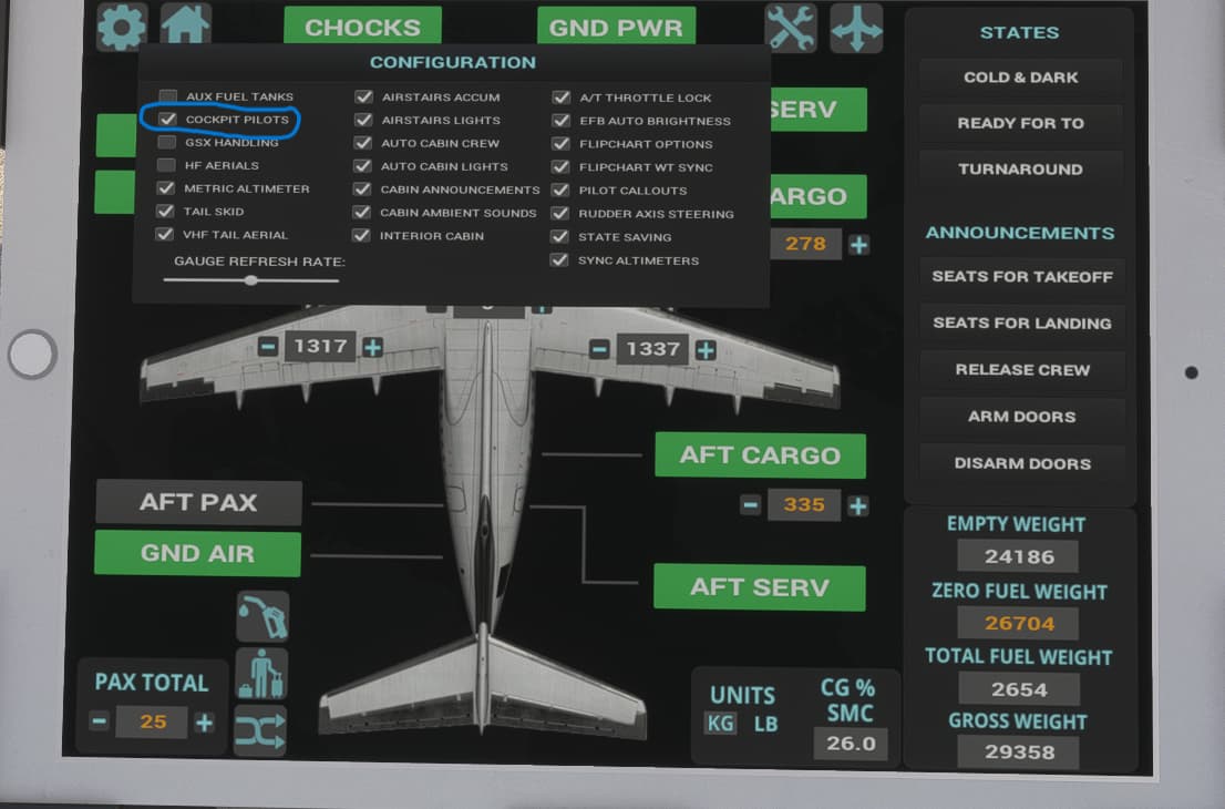 Just one question, Looked through the manual and EFB is there a click spot to diable my co-pilot? I could not find it