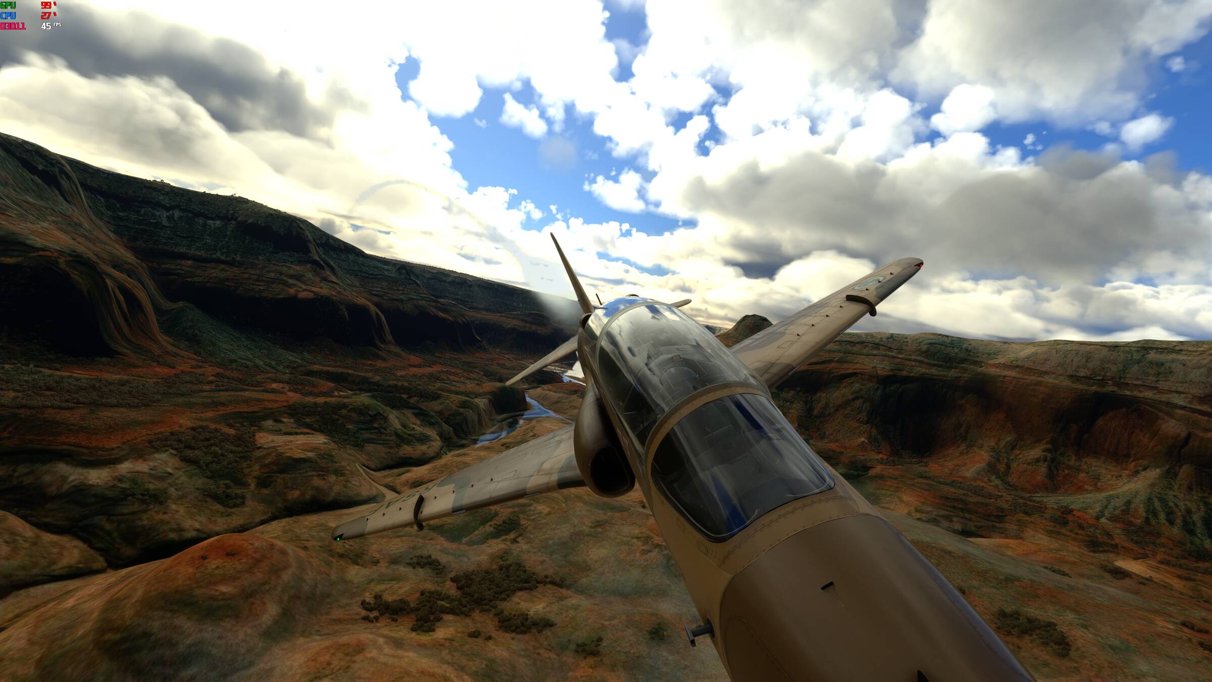 I should point out that this has been done simply to show how real airplanes fly, not the “arcade” method you have used in your “challenge”. 2K hours in a desktop simulator aren’t worth 20 minutes in a real aircraft, and of course in real life no fast jet would fly through a canyon this narrow.