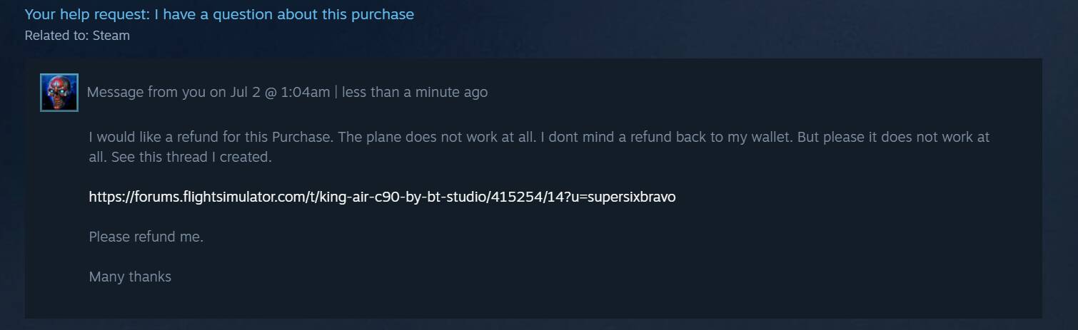 Except it’s not a Steam purchase. You didn’t buy a game, you bought credits. And they have no idea how those credits were used. I don’t know if they will honour this. Let’s hope.