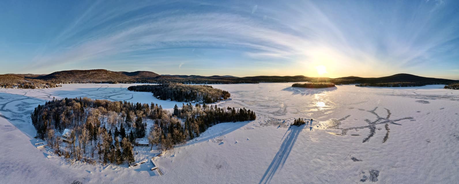Where I live (North 46.80â), we get ice on lakes in end of November to early December to mid-April. This is a picture of CSP8, Lake Sept-Iles water aerodrome on December 15 2024 with ice since two weeks and 4 inches thick: