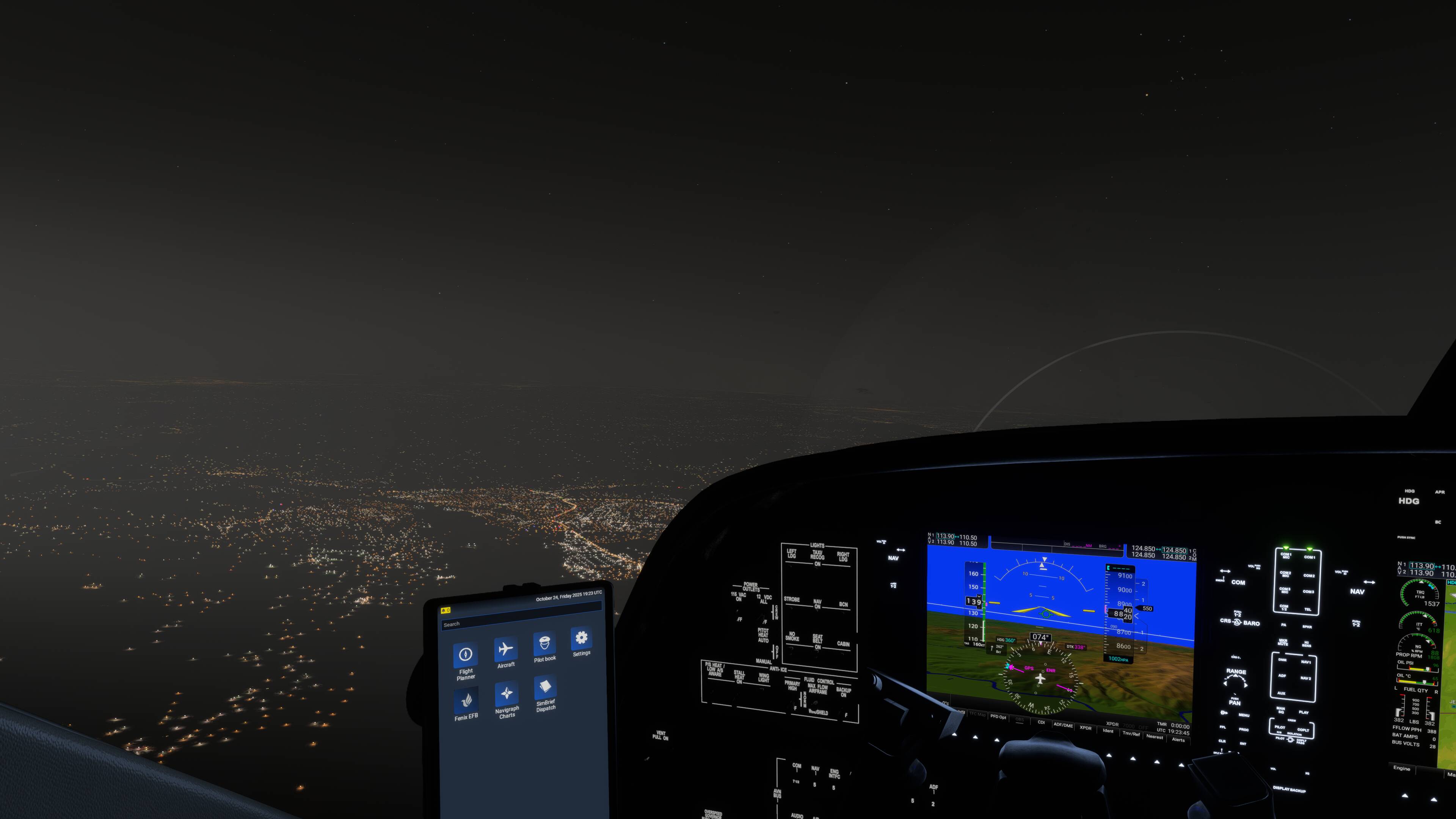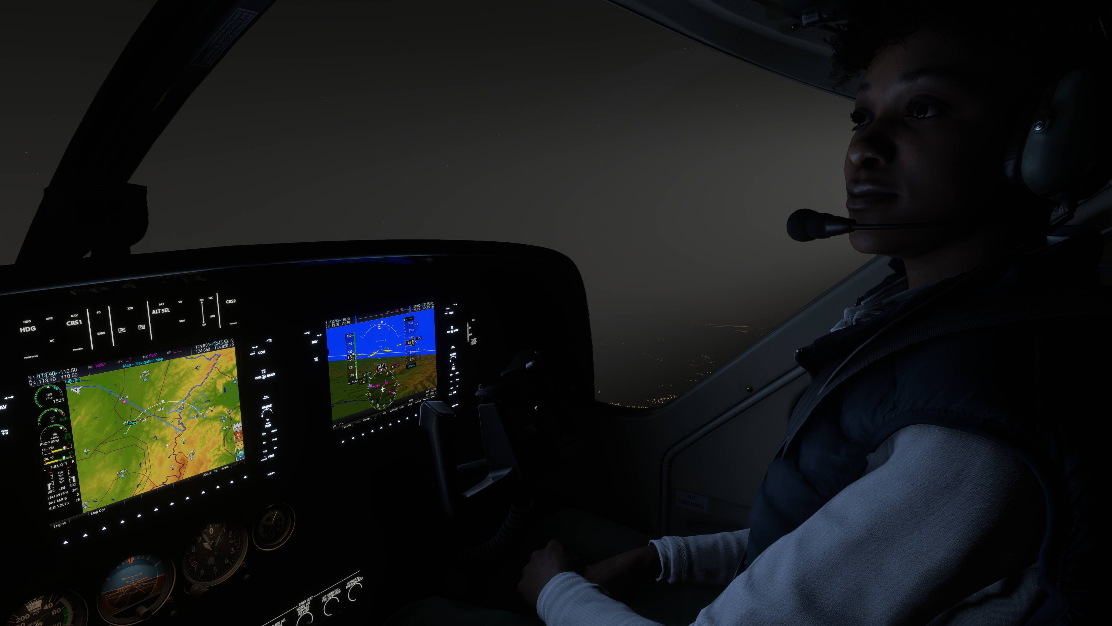 At nighttime, powerful lights such as landing and taxi lights create a blindingly unrealistic light haze in front of the aircraft that makes it difficult to see through. The effect is similar to lighting up fog or flying in clouds but my flights do NOT involve these conditions at all. These flights are CAVOK conditions where humidity is even low and visibility is in the 10’s of kilometres.