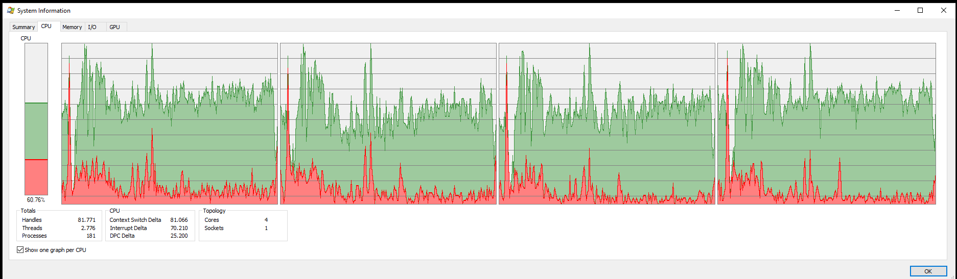 I also know, that when monitoring the CPU usage, one must not look at the overall average utilization but instead the single core utilization.