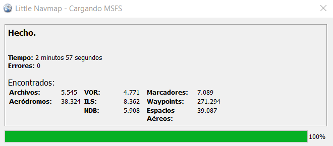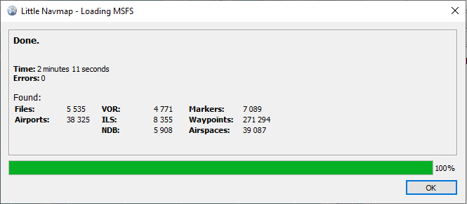 As in Green vs. Blue? I have LNM 2.6.11, nothing in the Community Folder, Win version 20H2.. Not sure Community Folder contents are involved at all, it seems the load bar color defines the number of Files, Airports and ILS. The load times are quite different as well, but apparently not related to the file number differences.