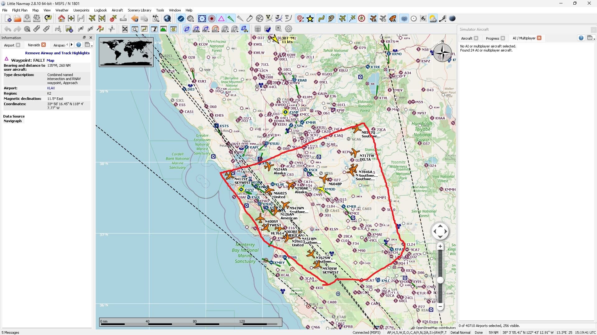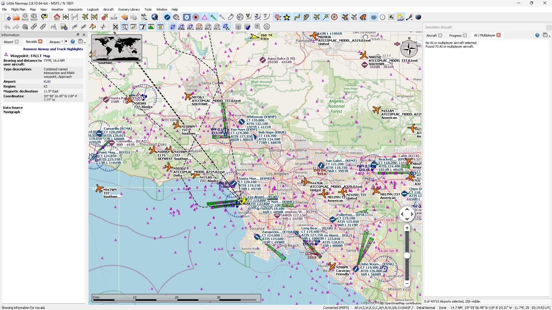 The whole test, argument, discussion that was going on wasn’t about the accuracy of the flights (we know it’s real data) but more the depiction of those flights. Some of the busiest airspaces in the U.S. while having upwards of over 100-150 injected aircraft mostly injected into the airport seemed to have no more than 5-10 airborne planes that all seemed to be centralized on the approach to the airport and the bubble in which those aircraft were being displayed seemed to be limited to no more than around 25NM from the user. Which is definitely different than the supposed 80NM limit Because of this, AI depiction seems limited only to aircraft approaching/on final to an airport and not arriving or farther out like what you would see IRL. This can be seen by the differences between FSLTL where AI are injected to the max limit of 80NM and you can see strings of AI arriving into the approach area or AI traversing around the airspace of the airport. With MSFS you don’t see these strings of arrivals except for immediately on the approach path once on a general final to the airport and you also don’t see other AI traversing around the airspace which in places like SOCAL is extremely common. Other places similar would be KDEN, KSFO, KSTL where you often get a lot of traffic flying overhead enroute. So it seems you’ll only see traffic based on your stage of flight in a limited geographical region.