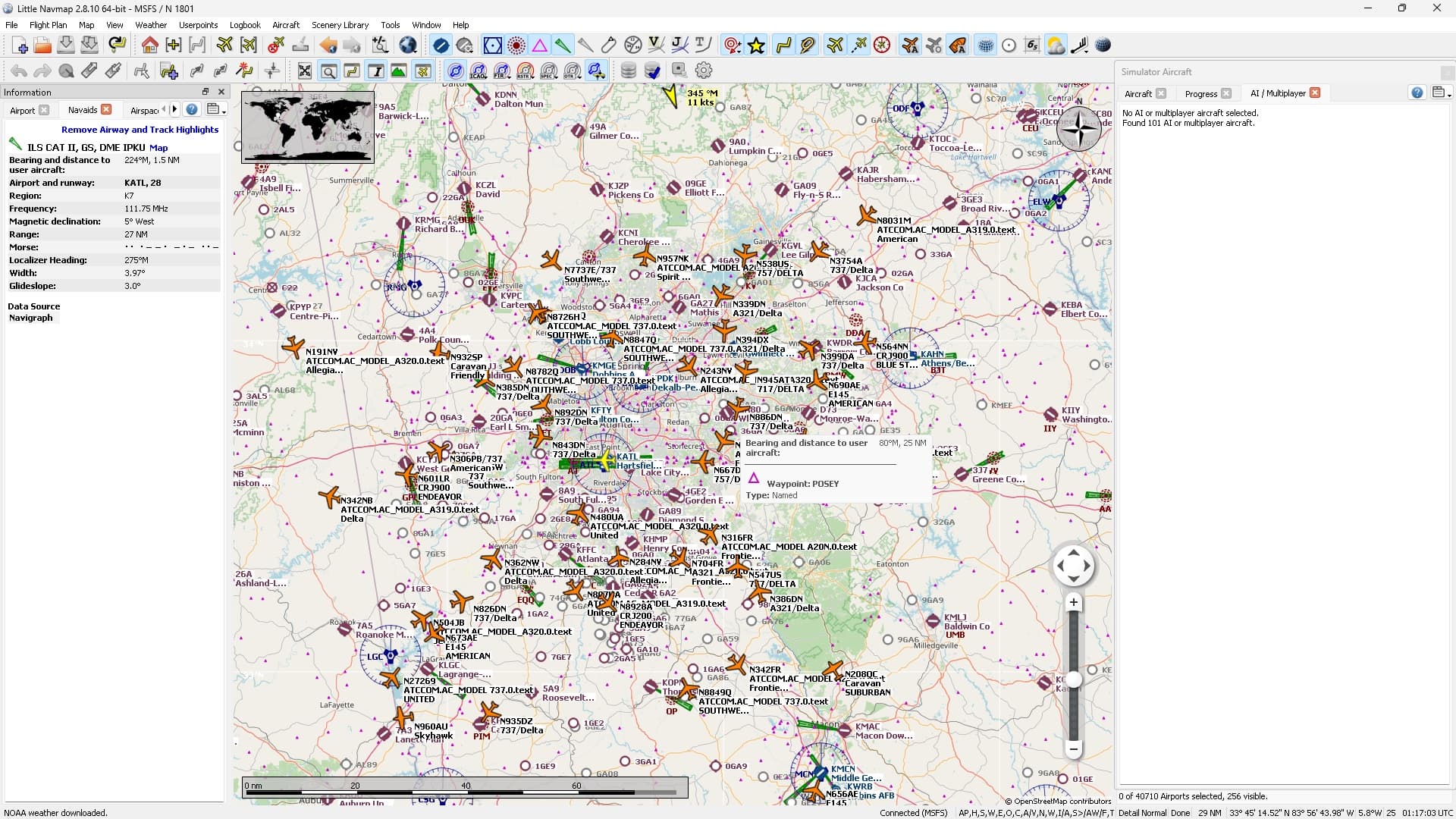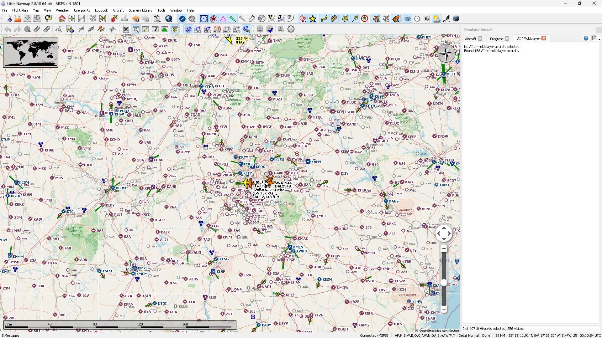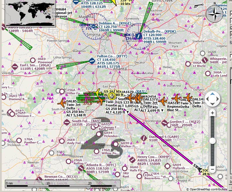 If this is what I am seeing then that is what you’re also seeing. Why you keep posting cropped and zoomed photos just where the traffic is at and not the entire LNM I have no idea. I know departures take awhile to populate but arrivals should spawn almost immediately. To have 158 spawned AI and only 5 of those are approaching aircraft only on the approach path when per FlightAware there are 10 arrivals outside of the 20-25NM range that aren’t being displayed shows and proves there’s an issue. Seeing as how I can remember something similar from back with SU10 it’s likely this is how the traffic has been for quite some time. I doubt anyone until now has really realized that the injection stops about 25NM from around their aircraft and have just been thinking that the traffic there is the way it should be. For most large airports that have a final approach path of about 15-20 miles, this makes sense why there’s only traffic populating the approach and not on the arrival. Once departures are injected and takeoff, they’re free to fly on. I also imagine they disappear about the 25NM too. That I haven’t tested. But what applies to arrivals would also apply to departures in this instance. Going off of how FSLTL models their injector, it sounds like MSFS needs to look at what their injection radius is actually set to, because it’s not 80NM. FSLTL proves this and so does the testing and these results which I have been able to duplicate both at KDFW and KATL, both of which are default airports. Performance wise that makes sense, especially since it wants to populate the entire airport closest to the user. But that’s not what is advertised.