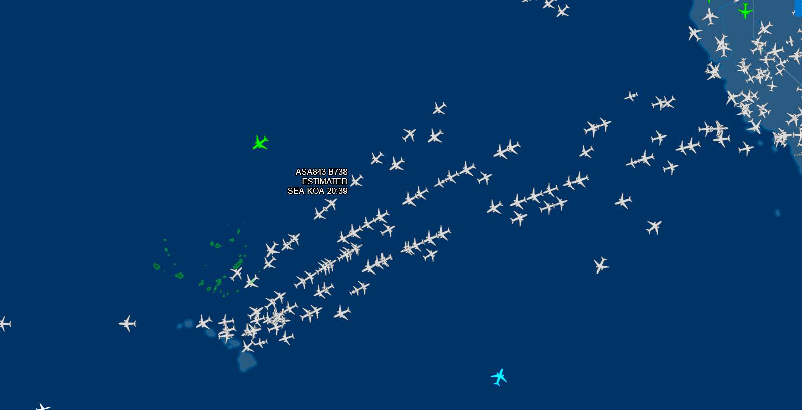 Now I’m sad. I’m crossing the Pacific from Vancouver to Honolulu and nothing. I’m alone in the sky, no chating while Flightaware indicate that the sky is full! Look at the map, I’m about in the middle of the group but it’s death in FS.