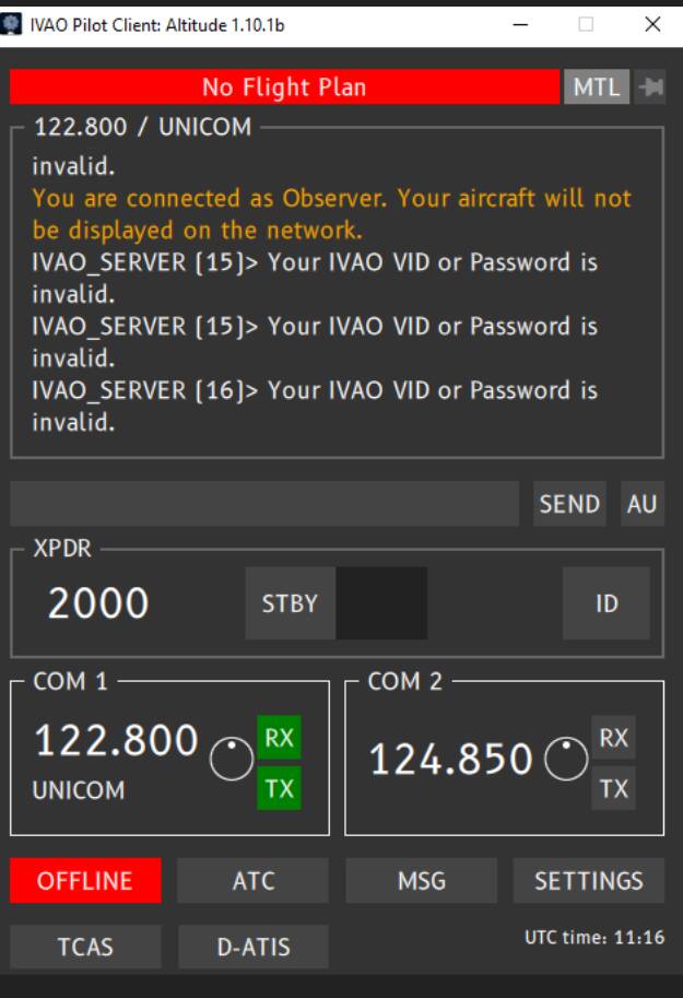 I have install the IVAO Client Altitudine, but it show me this Password error. I m sure to put that correctly (copy and past) Any ideas Please!? Have try evrerythings, but nothing…