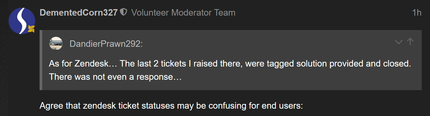 As for Zendesk.. The last 2 tickets I raised there, were tagged solution provided and closed. There was not even a response..